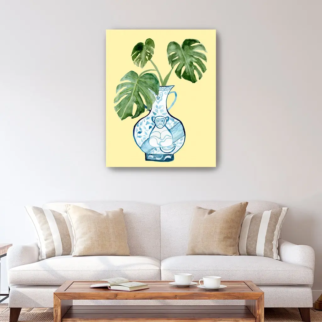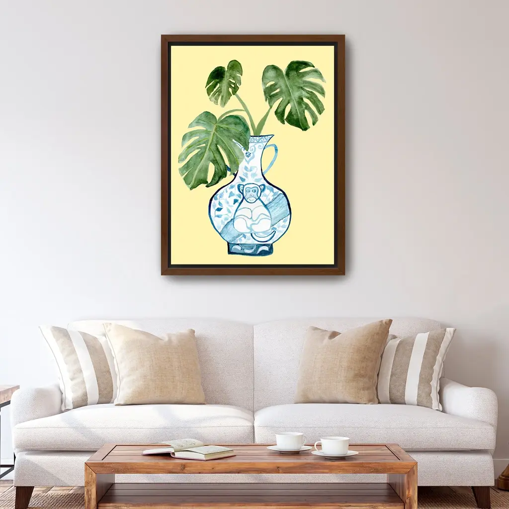 Elevate your space with this elegant minimalist plant in vase canvas art print. Featuring a simple yet striking design, this artwork beautifully captures the essence of nature in a clean, modern aesthetic. The serene colors and delicate lines create a calming atmosphere, perfect for enhancing any room in your home.Available in black frame, dark walnut frame and oak frames, or as a frameless canvas. Our Gallery Wrap Canvas Prints are proudly assembled with high quality materials in California, USA. Each piece is printed on a thick, archival grade canvas using Giclee technology. It is then hand-stretched by our experienced artisans over solid pine bars, which will not warp over time. The final product is a piece personally crafted for you to confidently display on your wall. Care and Assembly: Ensure that the location of your piece has little to no exposure to heat, sunlight, and moisture. Wipe clean, only if needed. Each piece includes a sawtooth hanger to hang on your wall vertically.