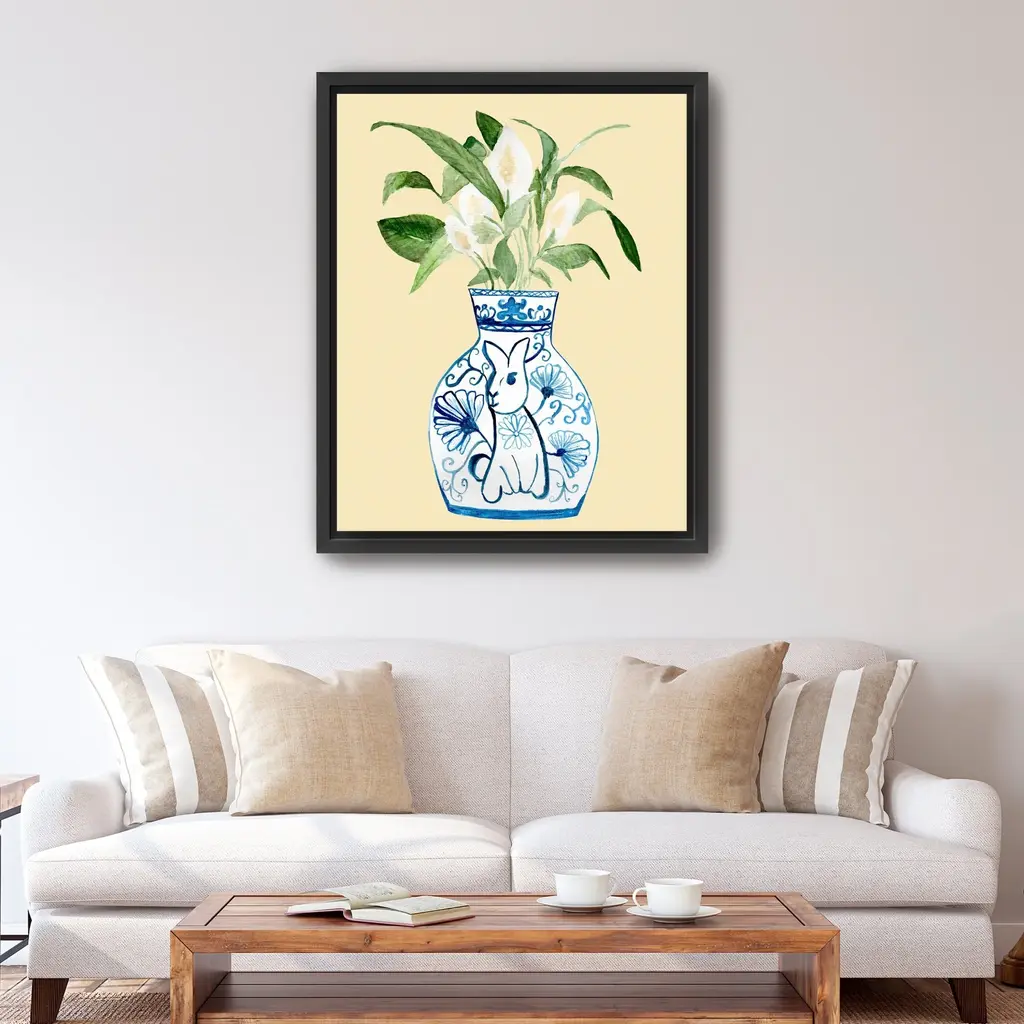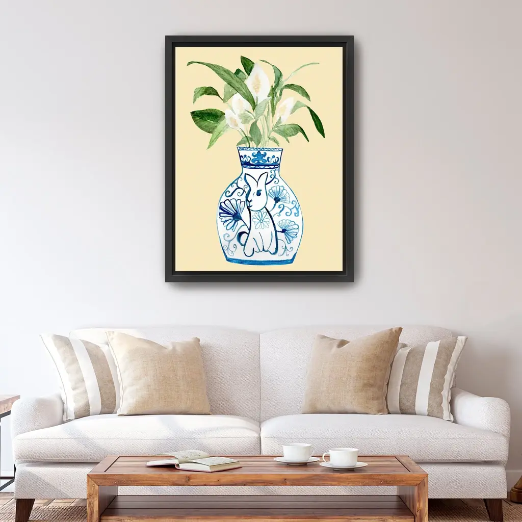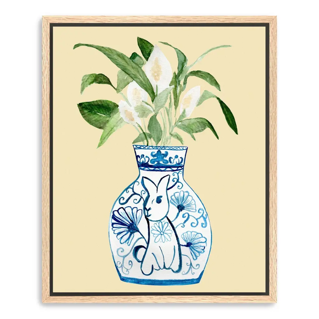 Elevate your space with this elegant minimalist plant in vase canvas art print. Featuring a simple yet striking design, this artwork beautifully captures the essence of nature in a clean, modern aesthetic. The serene colors and delicate lines create a calming atmosphere, perfect for enhancing any room in your home.Available in black frame, dark walnut frame and oak frames, or as a frameless canvas. Our Gallery Wrap Canvas Prints are proudly assembled with high quality materials in California, USA. Each piece is printed on a thick, archival grade canvas using Giclee technology. It is then hand-stretched by our experienced artisans over solid pine bars, which will not warp over time. The final product is a piece personally crafted for you to confidently display on your wall. Care and Assembly: Ensure that the location of your piece has little to no exposure to heat, sunlight, and moisture. Wipe clean, only if needed. Each piece includes a sawtooth hanger to hang on your wall vertically.