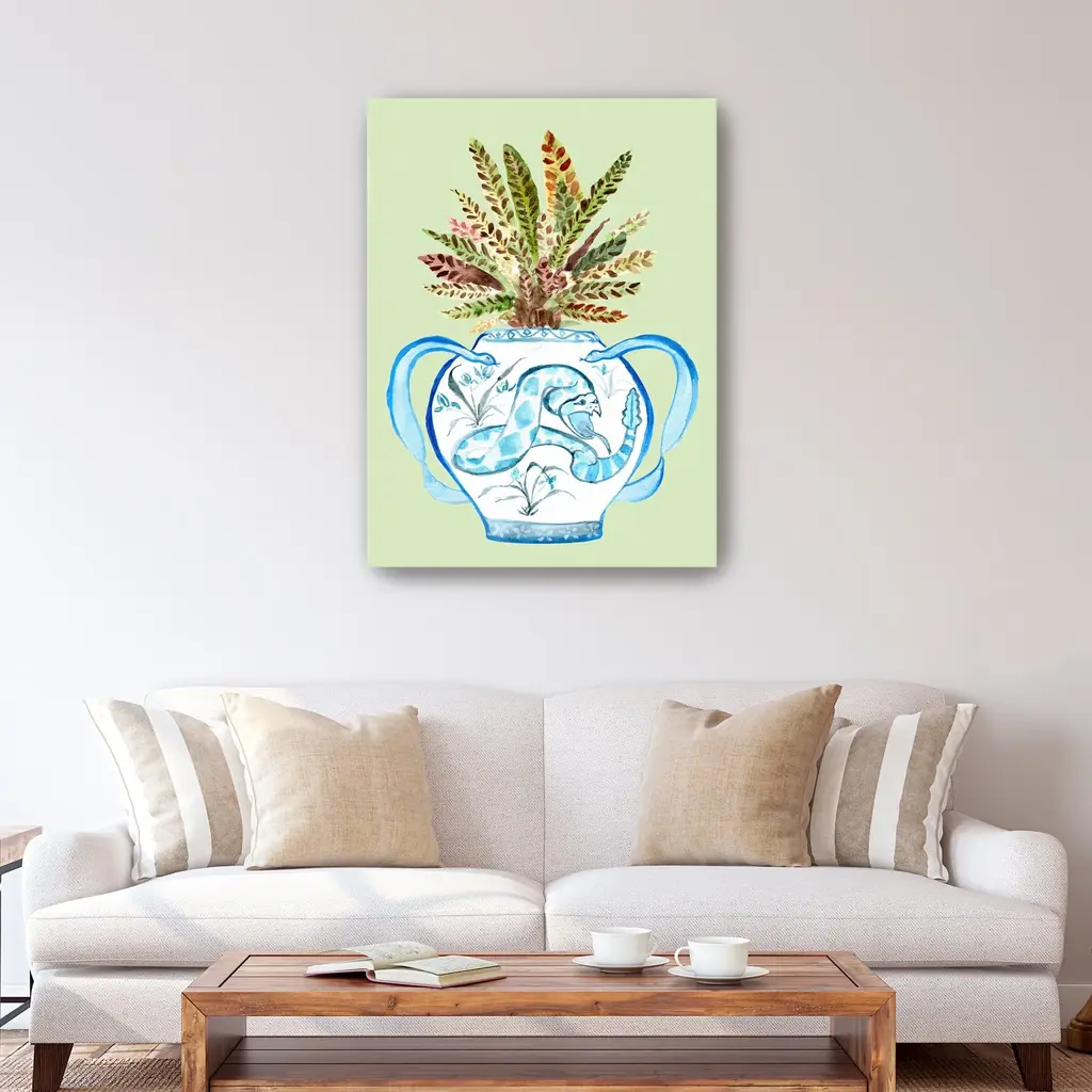 Elevate your space with this elegant minimalist plant in vase canvas art print. Featuring a simple yet striking design, this artwork beautifully captures the essence of nature in a clean, modern aesthetic. The serene colors and delicate lines create a calming atmosphere, perfect for enhancing any room in your home.Available in black frame, dark walnut frame and oak frames, or as a frameless canvas. Our Gallery Wrap Canvas Prints are proudly assembled with high quality materials in California, USA. Each piece is printed on a thick, archival grade canvas using Giclee technology. It is then hand-stretched by our experienced artisans over solid pine bars, which will not warp over time. The final product is a piece personally crafted for you to confidently display on your wall. Care and Assembly: Ensure that the location of your piece has little to no exposure to heat, sunlight, and moisture. Wipe clean, only if needed. Each piece includes a sawtooth hanger to hang on your wall vertically.