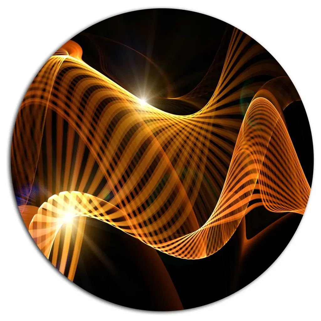 Bring Contemporary Abstraction to your home with this large Circle Metal wall art. This Yellow 3d Shaped Fractal Design Metal Artwork makes it the focal point of any room or office. - White Gloss Coating ensures colors are extra vibrant with light reflection.- Aluminum grade Sheet Metal with 1 inch mounting frame on the back giving the illusion that the artwork is floating on the wall..- Mounting Brackets are included along with instructions.- High Quality Digital images are created directly into a glossy aluminum panel producing a stunning and captivating print into the glossy finish of the metal.- Water, Fire and Scratch resistant HD Aluminum panels.- Looks better than any photo paper and guaranteed to last at least 20 years- Easy to clean with a microfiber cloth. Colors are far superior to regular Canvas Art. - Easy to Hang