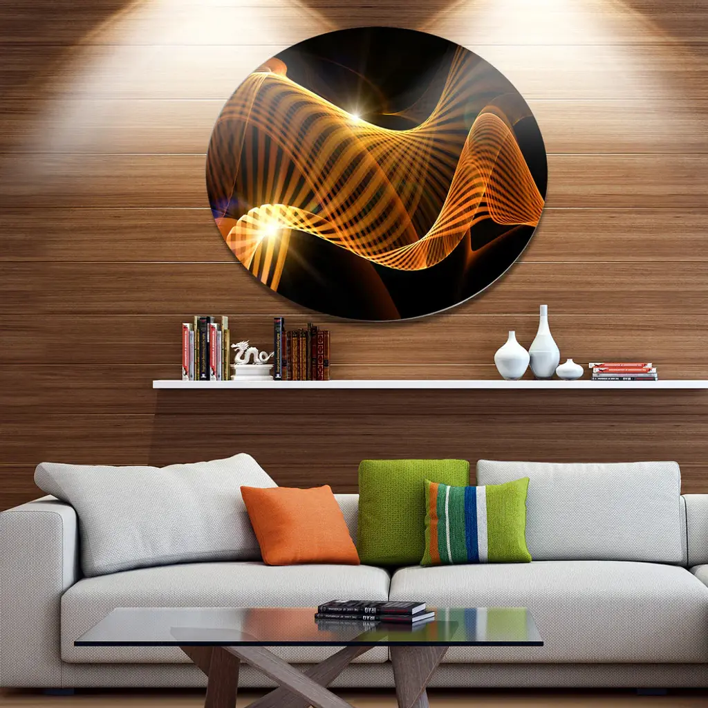 Yellow 3D Shaped Fractal Design, Abstract Disc Metal Wall Art, 36"