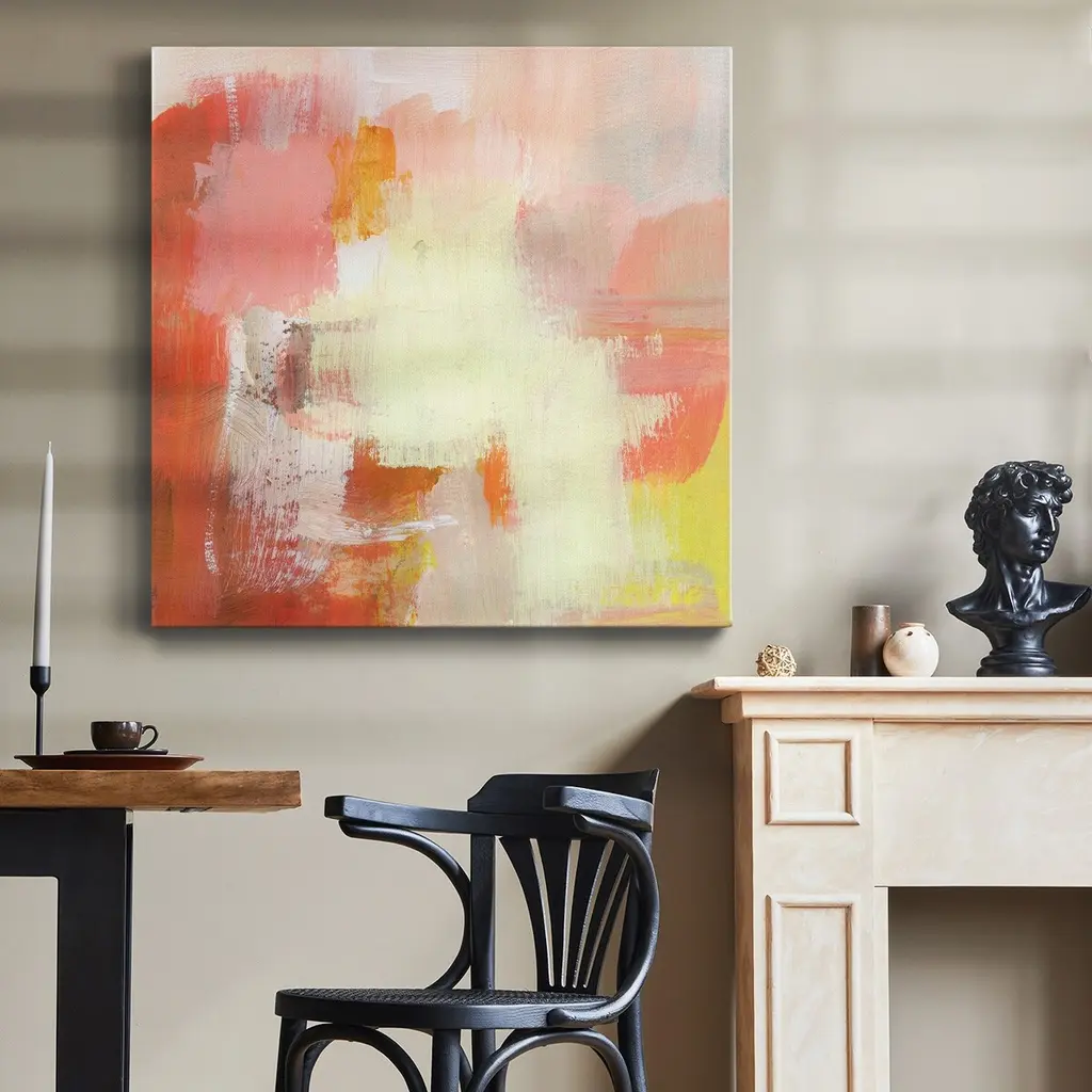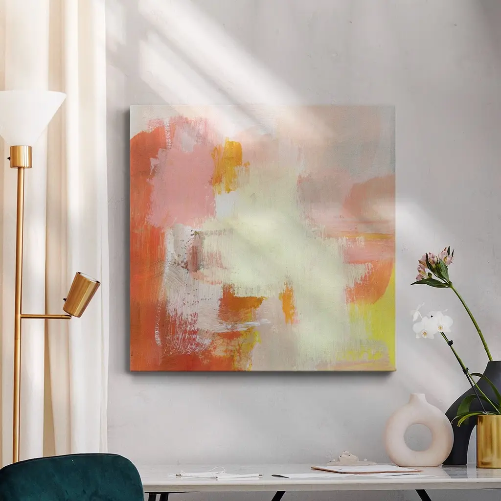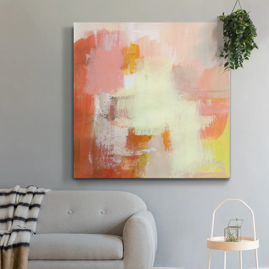 Yellow and Blush III-Premium Gallery Wrapped Canvas - Ready to Hang A premium hand stretched gallery wrapped canvas print created to last. Featuring a beveled a solid wood stretcher bar, each piece comes ready to hand 5 SIZES AVAILABLE 10''X10'' - Overall Size 16''x16'' - Overall Size 24''x24'' - Overall Size 32''x32'' - Overall Size 40''x40'' - Overall Size Each piece is made to order. Built to Last Each piece comes ready to hang Solid wood stretcher Fade and Water resistant Made domestically