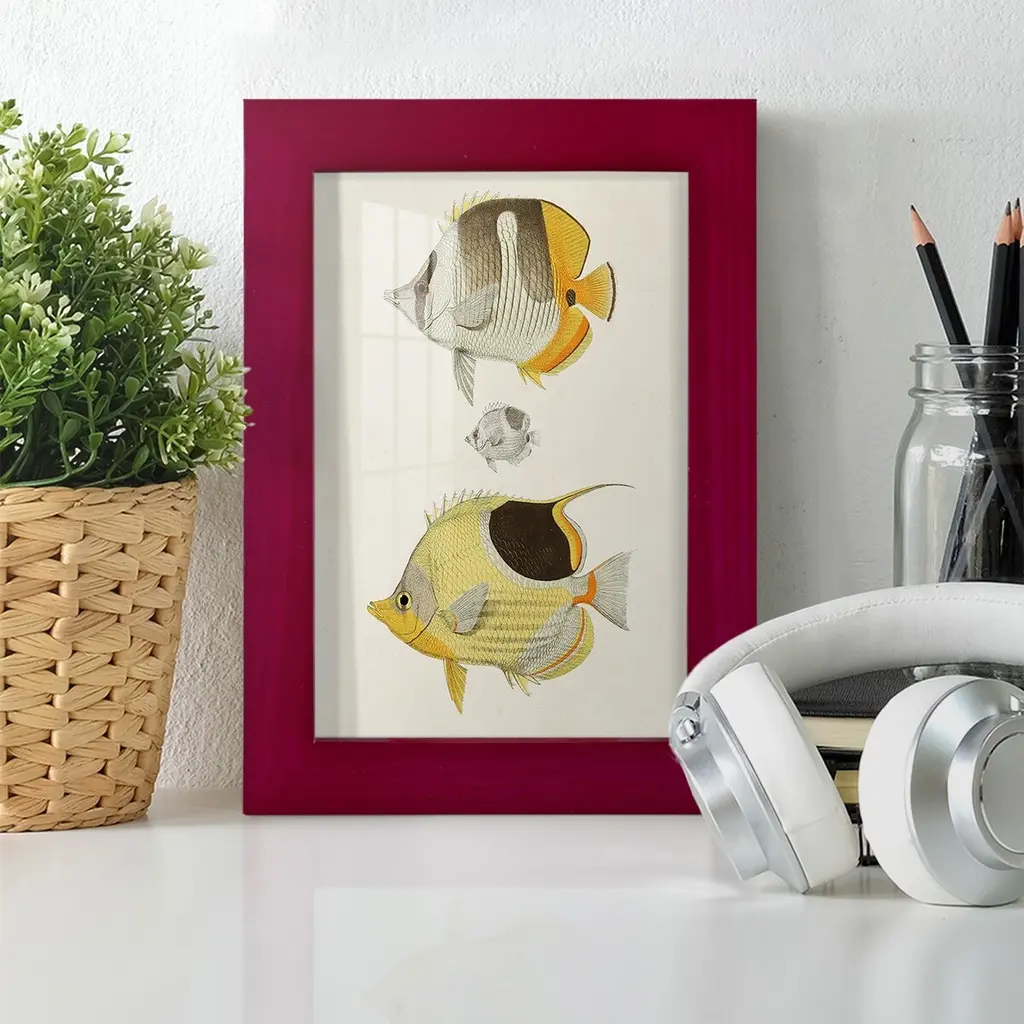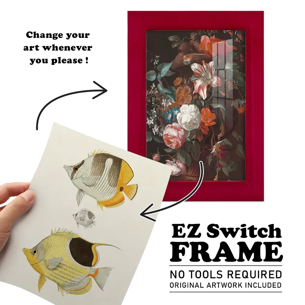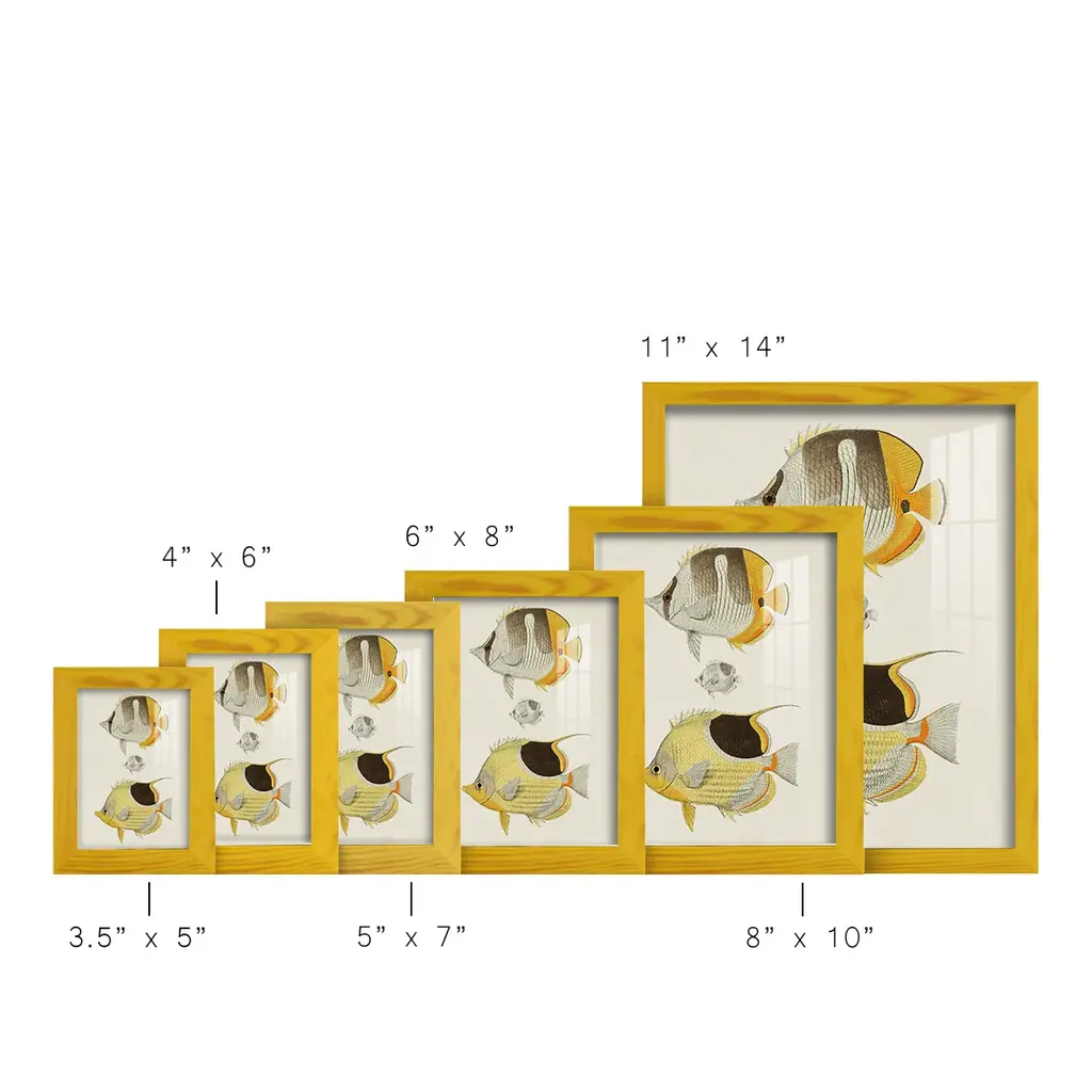 Yellow & Grey Fish II -EZ SWITCH Framed Print w/glass-Cherry Red A delightful, framed print. Featuring a solid wood frame with real wood glass. This premium print is giclee quality. In addition, every frame features a removable back and table top stand. This allows you to change your art in the future or to just stand the art on a table for a new look. We are sure you'll enjoy our new series of EZ SWITCH Framed Art. Solid Wood Frame Real Glass Removable / Replaceable Art Built in Tabletop Stand Sizes range from 4x6 up to 12x15 - buy just one or pair them up as sets as you see fit.