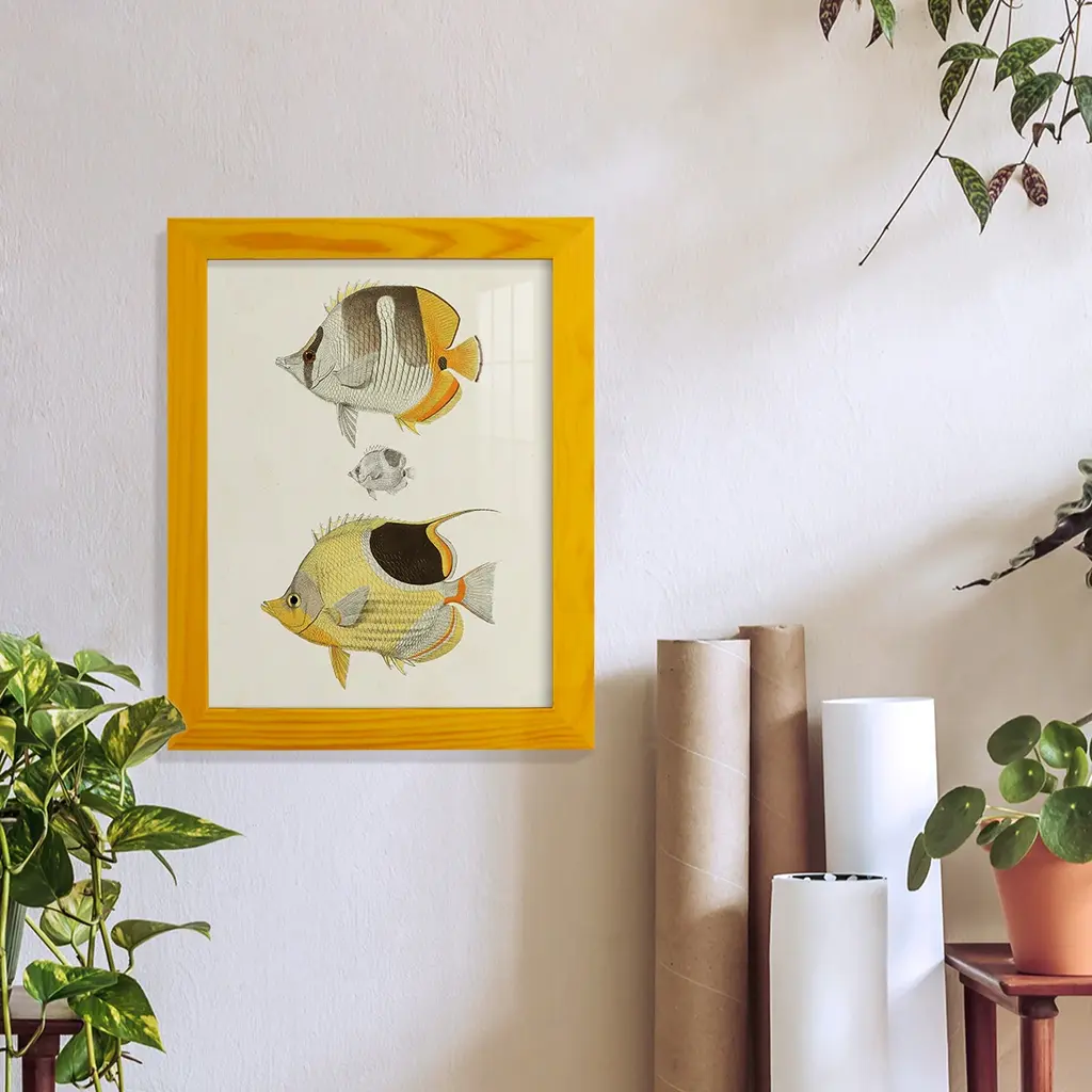 Yellow & Grey Fish Ii -Framed Print W/glass-Cherry Red - 12x15 - Yellow