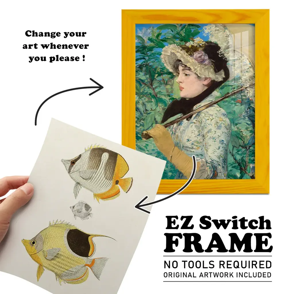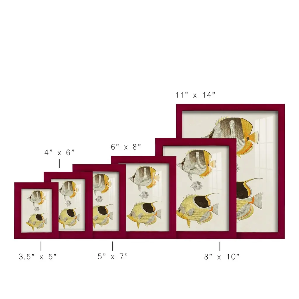 Yellow & Grey Fish II -EZ SWITCH Framed Print w/glass-Cherry Red A delightful, framed print. Featuring a solid wood frame with real wood glass. This premium print is giclee quality. In addition, every frame features a removable back and table top stand. This allows you to change your art in the future or to just stand the art on a table for a new look. We are sure you'll enjoy our new series of EZ SWITCH Framed Art. Solid Wood Frame Real Glass Removable / Replaceable Art Built in Tabletop Stand Sizes range from 4x6 up to 12x15 - buy just one or pair them up as sets as you see fit.