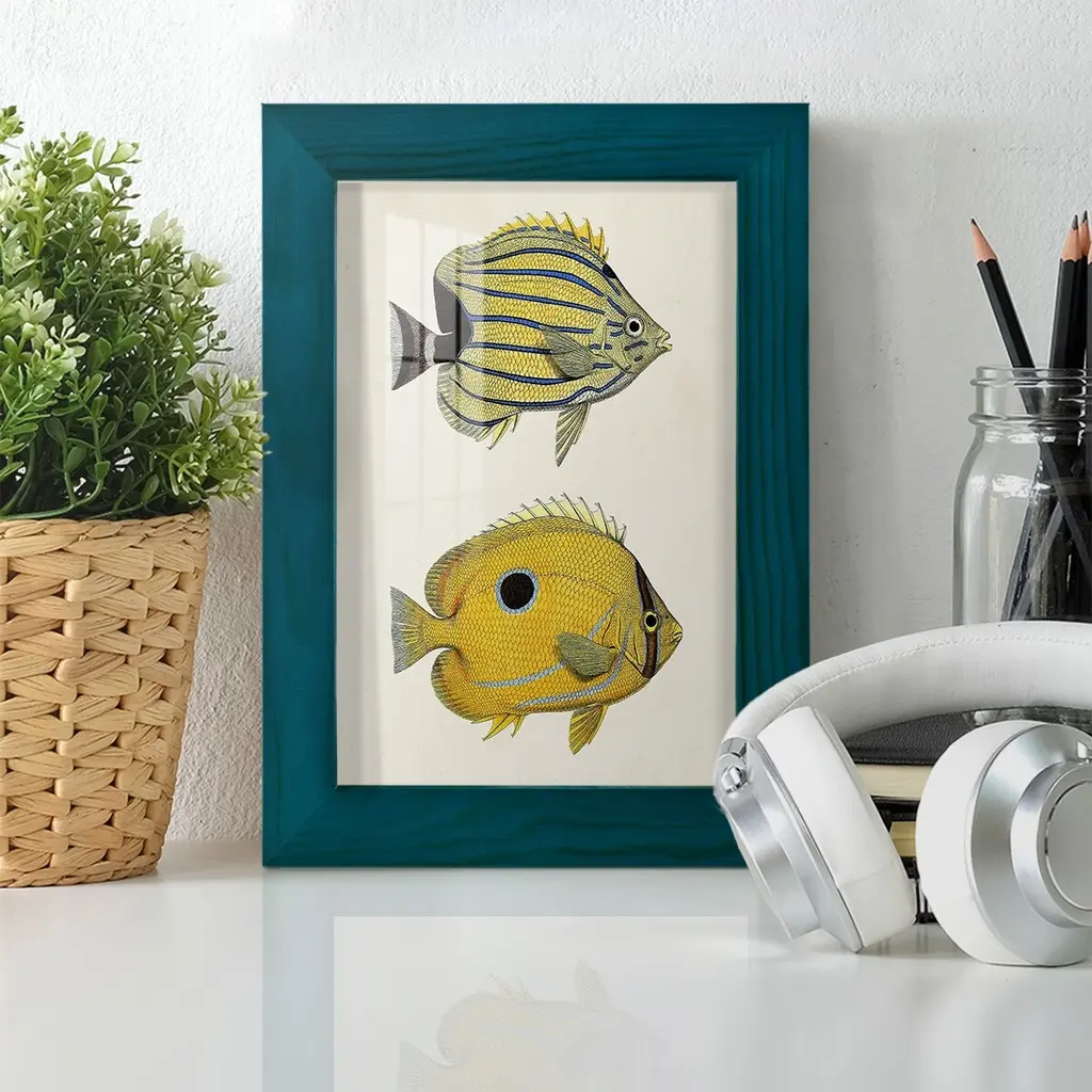 Yellow & Grey Fish III -EZ SWITCH Framed Print w/glass-Cherry Red A delightful, framed print. Featuring a solid wood frame with real wood glass. This premium print is giclee quality. In addition, every frame features a removable back and table top stand. This allows you to change your art in the future or to just stand the art on a table for a new look. We are sure you'll enjoy our new series of EZ SWITCH Framed Art. Solid Wood Frame Real Glass Removable / Replaceable Art Built in Tabletop Stand Sizes range from 4x6 up to 12x15 - buy just one or pair them up as sets as you see fit.
