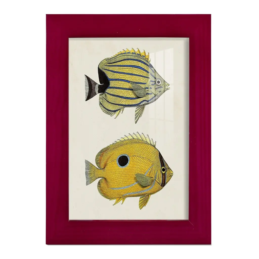 Yellow & Grey Fish Iii -Framed Print W/glass-Cherry Red - 4X6 - Maple