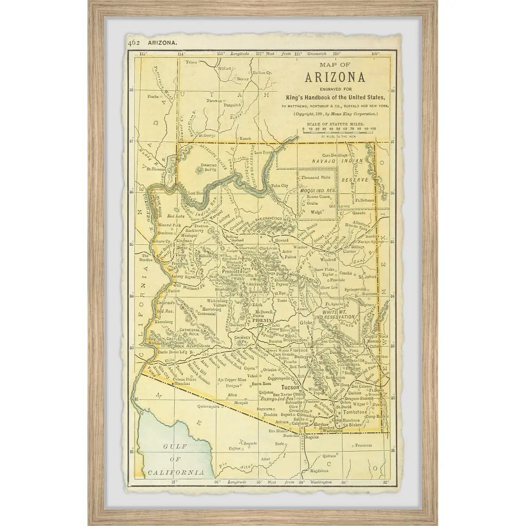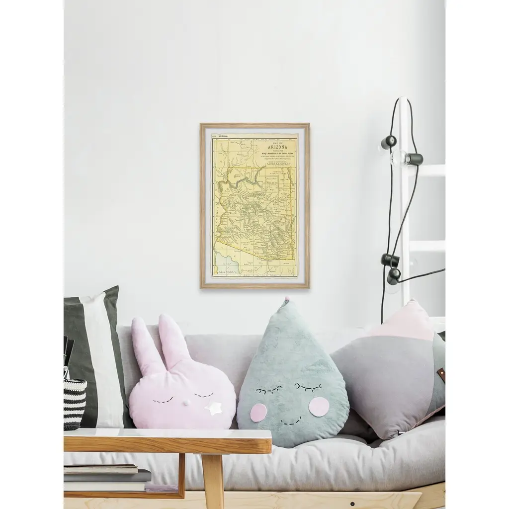 Showcase all that the Grand Canyon state has to offer with this detailed map of Arizona and its most popular spots. This piece is printed on high quality archive paper and professionally hand-framed. With wall-mounting hooks included, this artful accent is ready to hang up as soon as it reaches your front door. • Top quality Giclee print on high resolution Archive Paper • Hand cut deckled edges • High quality durable non-warping frame • Finished under shatter resistant plexiglass • Arrives ready to hang • Includes a certificate of authenticity • Printed the USA