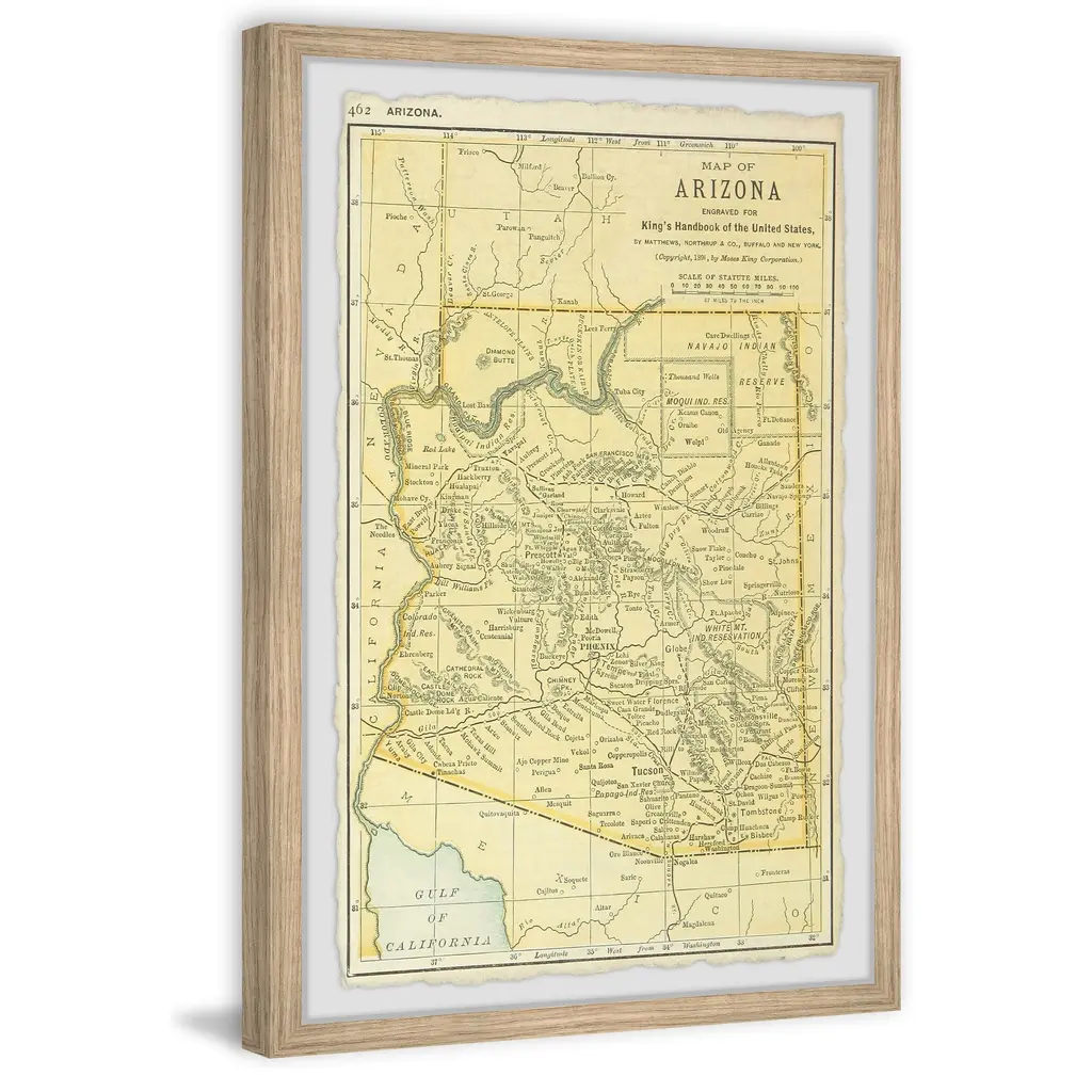 Showcase all that the Grand Canyon state has to offer with this detailed map of Arizona and its most popular spots. This piece is printed on high quality archive paper and professionally hand-framed. With wall-mounting hooks included, this artful accent is ready to hang up as soon as it reaches your front door. • Top quality Giclee print on high resolution Archive Paper • Hand cut deckled edges • High quality durable non-warping frame • Finished under shatter resistant plexiglass • Arrives ready to hang • Includes a certificate of authenticity • Printed the USA