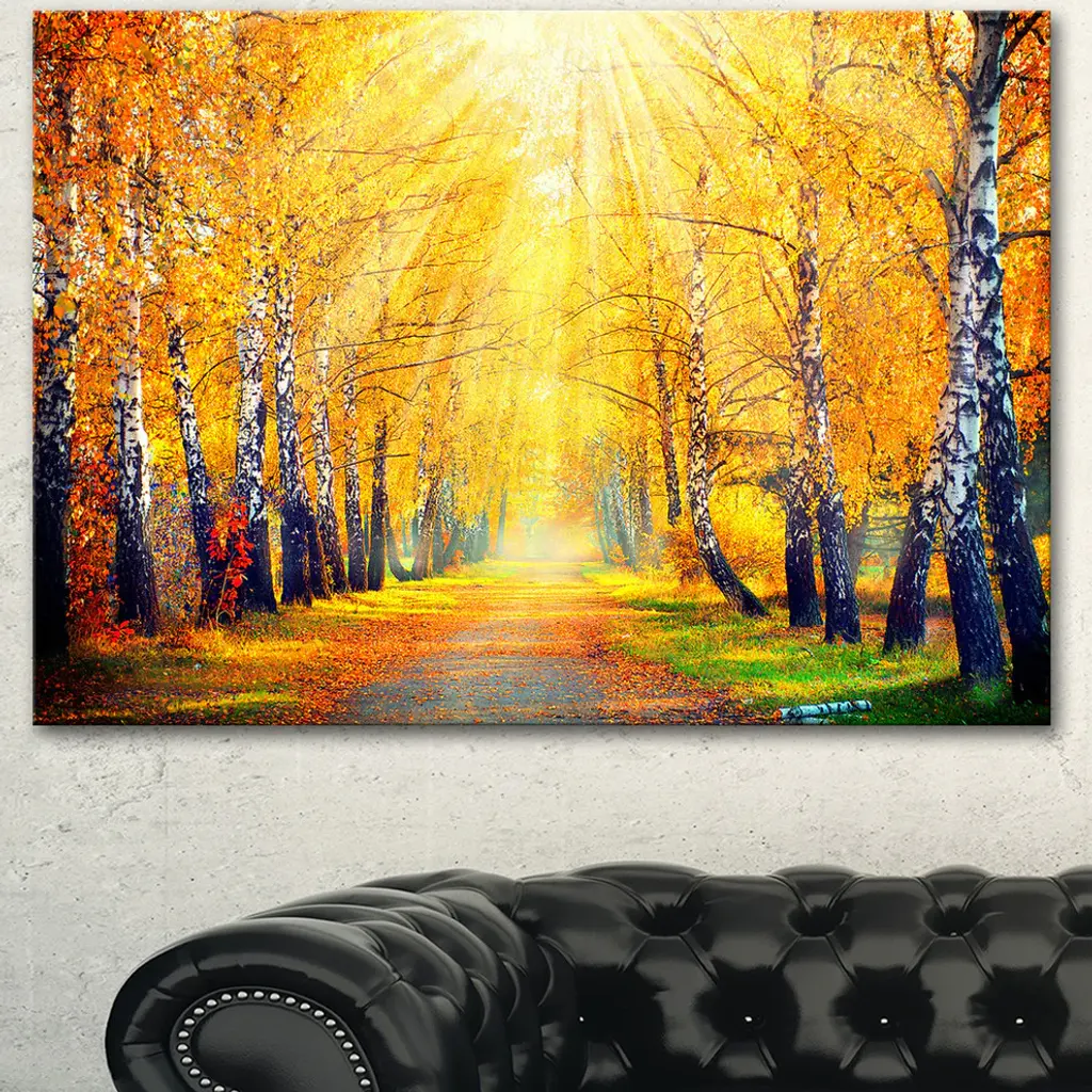 Yellow Autumn Trees In Sunray, Large Landscape Canvas Art Print, 60"x28"