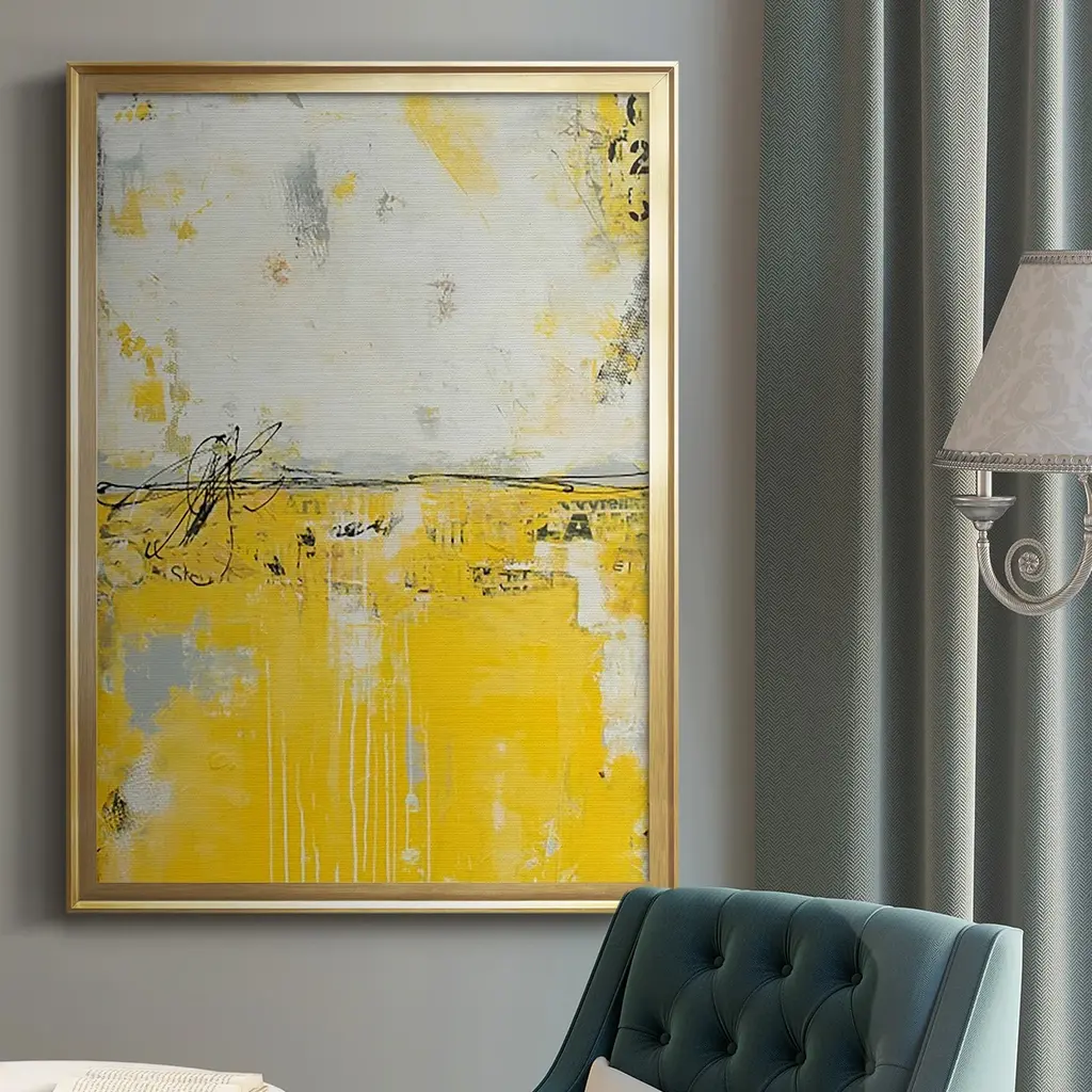 Yellow Bound Premium Framed Print - Ready to Hang A Premium Framed Print created to last. Framed in distressed wood and available in an array of sizes and colors Featuring a beveled a solid wood stretcher bar, each piece comes ready to hand 4 SIZES AVAILABLE 30.5''X42.5'' - Overall Size 26.5'X36.5'' - Overall Size 22.5''x30.5'' - Overall Size 18.5''x24.5'' - Overall Size Each piece is made to order. Each piece comes with hanging hardware. Made in the USA Ready to Hang