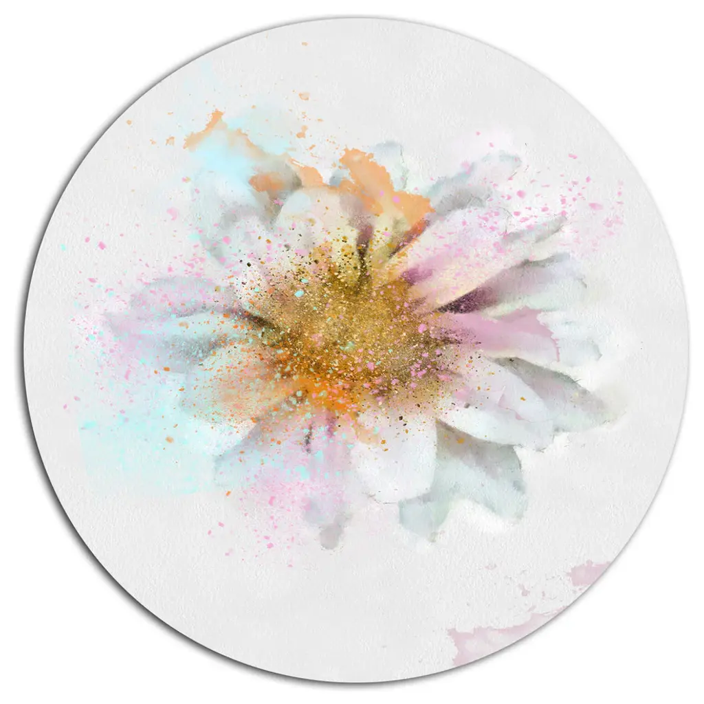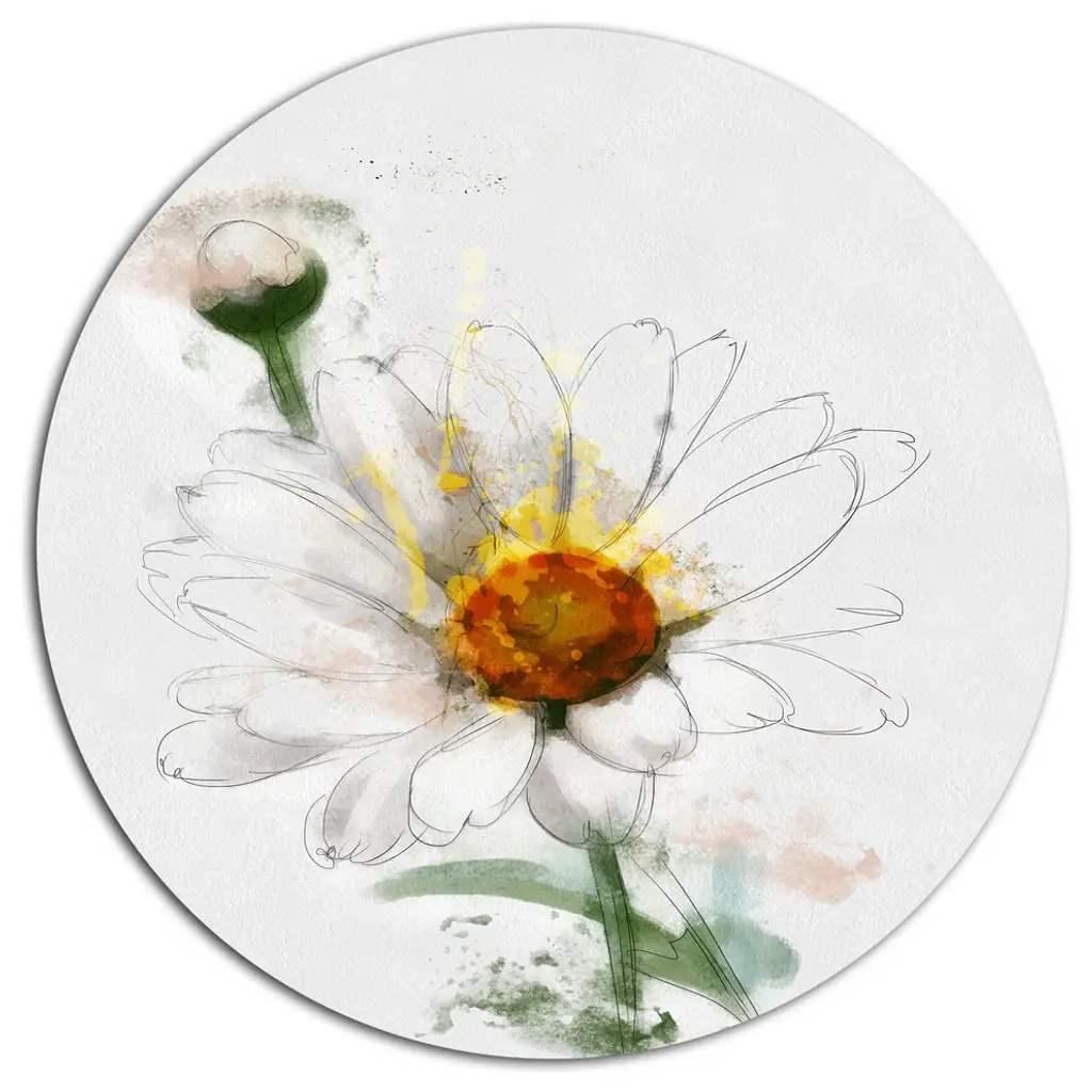Bring Contemporary Abstraction to your home with this large Circle Metal wall art. This Yellow Chamomile Sketch Watercolor Metal Artwork makes it the focal point of any room or office. - White Gloss Coating ensures colors are extra vibrant with light reflection.- Aluminum grade Sheet Metal with 1 inch mounting frame on the back giving the illusion that the artwork is floating on the wall..- Mounting Brackets are included along with instructions.- High Quality Digital images are created directly into a glossy aluminum panel producing a stunning and captivating print into the glossy finish of the metal.- Water, Fire and Scratch resistant HD Aluminum panels.- Looks better than any photo paper and guaranteed to last at least 20 years- Easy to clean with a microfiber cloth. Colors are far superior to regular Canvas Art. - Easy to Hang