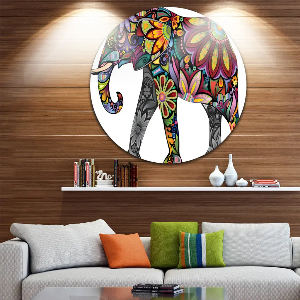 Bring Contemporary Abstraction to your home with this large Circle Metal wall art. This Yellow Cheerful Elephant Metal Artwork makes it the focal point of any room or office. - White Gloss Coating ensures colors are extra vibrant with light reflection.- Aluminum grade Sheet Metal with 1 inch mounting frame on the back giving the illusion that the artwork is floating on the wall..- Mounting Brackets are included along with instructions.- High Quality Digital images are created directly into a glossy aluminum panel producing a stunning and captivating print into the glossy finish of the metal.- Water, Fire and Scratch resistant HD Aluminum panels.- Looks better than any photo paper and guaranteed to last at least 20 years- Easy to clean with a microfiber cloth. Colors are far superior to regular Canvas Art. - Easy to Hang