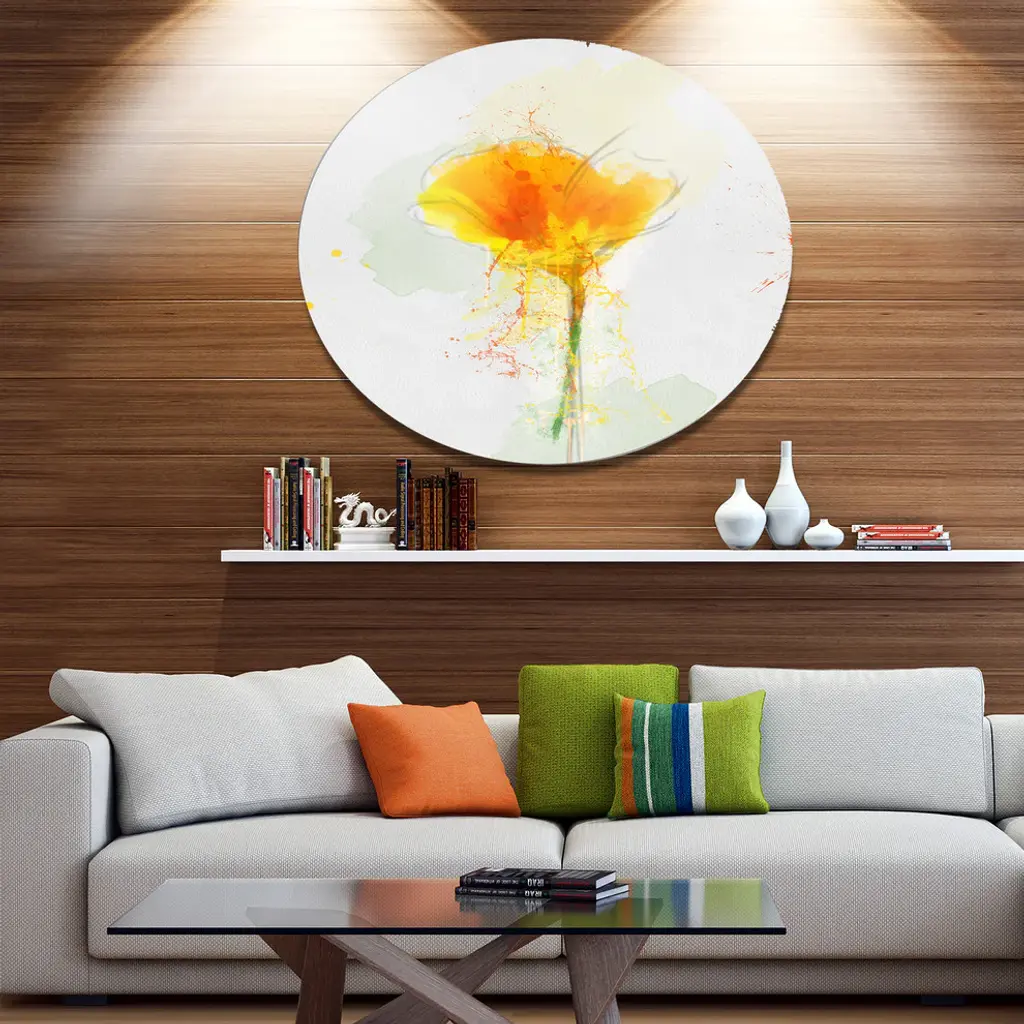 Bring Contemporary Abstraction to your home with this large Circle Metal wall art. This Yellow Flower Sketch Watercolor Metal Artwork makes it the focal point of any room or office. - White Gloss Coating ensures colors are extra vibrant with light reflection.- Aluminum grade Sheet Metal with 1 inch mounting frame on the back giving the illusion that the artwork is floating on the wall..- Mounting Brackets are included along with instructions.- High Quality Digital images are created directly into a glossy aluminum panel producing a stunning and captivating print into the glossy finish of the metal.- Water, Fire and Scratch resistant HD Aluminum panels.- Looks better than any photo paper and guaranteed to last at least 20 years- Easy to clean with a microfiber cloth. Colors are far superior to regular Canvas Art. - Easy to Hang
