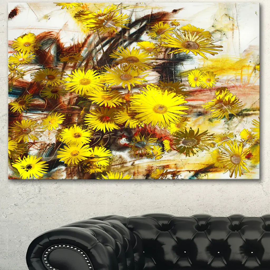 Yellow Flowers Watercolor Illustration, Floral Art Canvas Print, 60"x28"