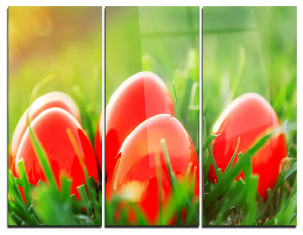 "Yellow Green Easter Eggs" Photo Metal Wall Art, 3 Panels, 36"x28"