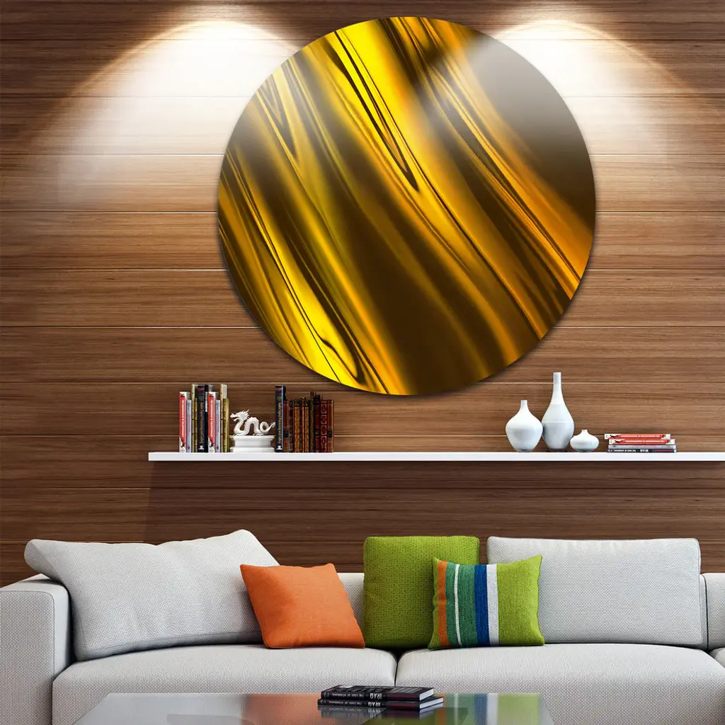 Yellow Liquid Gold Design, Abstract Digital Art Disc Metal Artwork, 11"