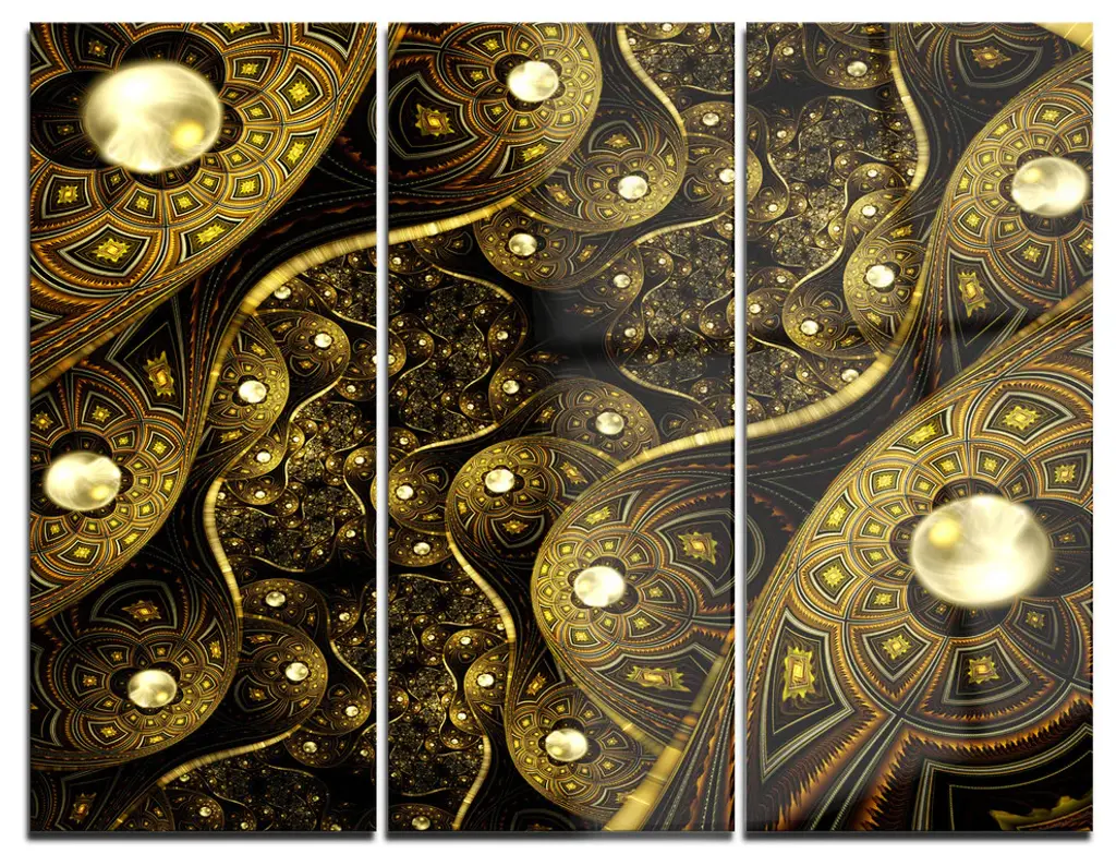 "Yellow Metallic Fabric Pattern" Digital Metal Wall Art, 3 Panels, 36"x28"