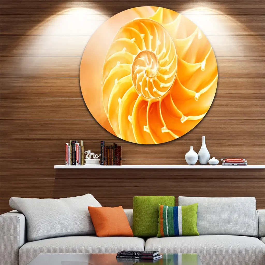 Yellow Nautilus Shell, Abstract Art Disc Metal Wall Art, 36"