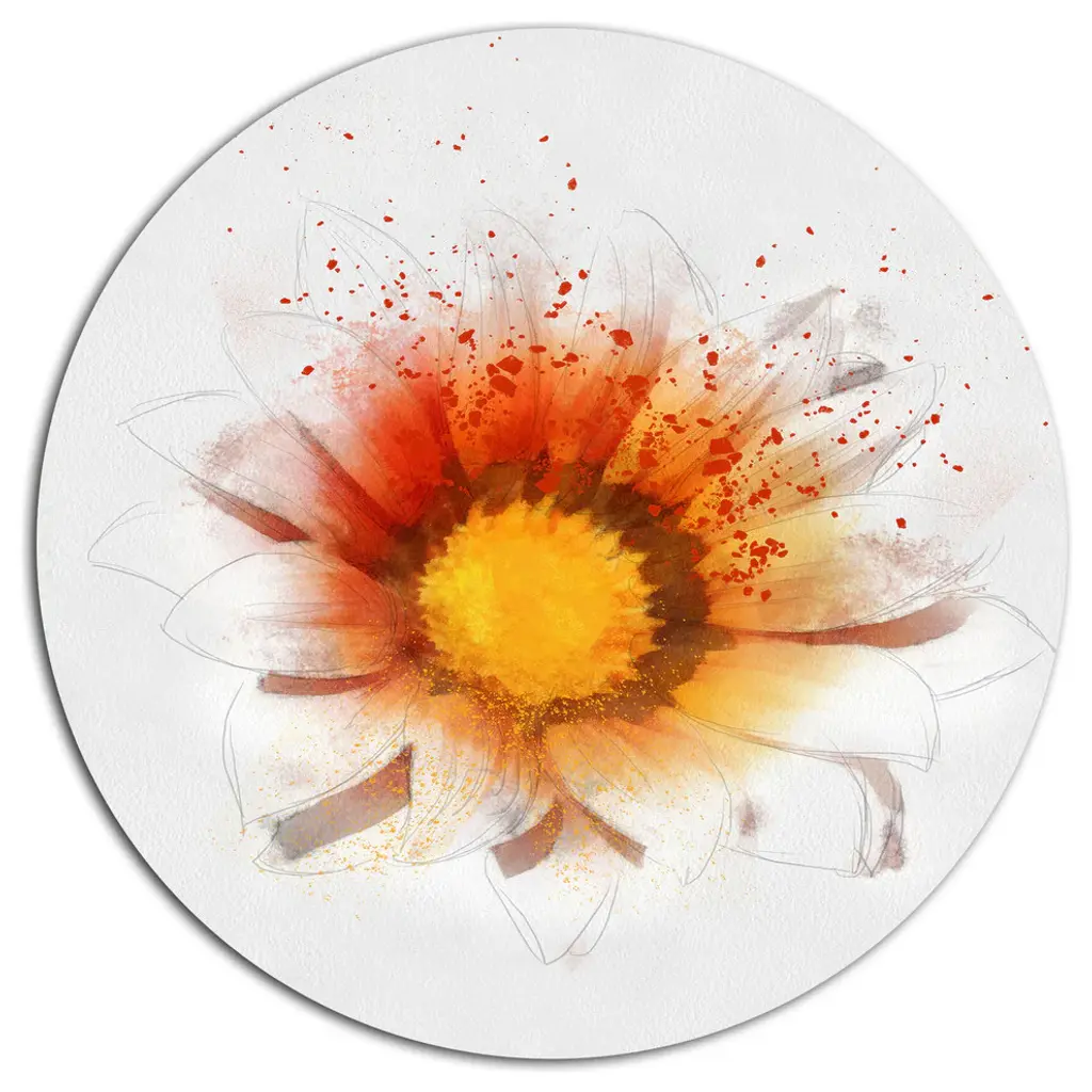 Bring Contemporary Abstraction to your home with this large Circle Metal wall art. This Yellow Orange Flower Watercolor Metal Artwork makes it the focal point of any room or office. - White Gloss Coating ensures colors are extra vibrant with light reflection.- Aluminum grade Sheet Metal with 1 inch mounting frame on the back giving the illusion that the artwork is floating on the wall..- Mounting Brackets are included along with instructions.- High Quality Digital images are created directly into a glossy aluminum panel producing a stunning and captivating print into the glossy finish of the metal.- Water, Fire and Scratch resistant HD Aluminum panels.- Looks better than any photo paper and guaranteed to last at least 20 years- Easy to clean with a microfiber cloth. Colors are far superior to regular Canvas Art. - Easy to Hang