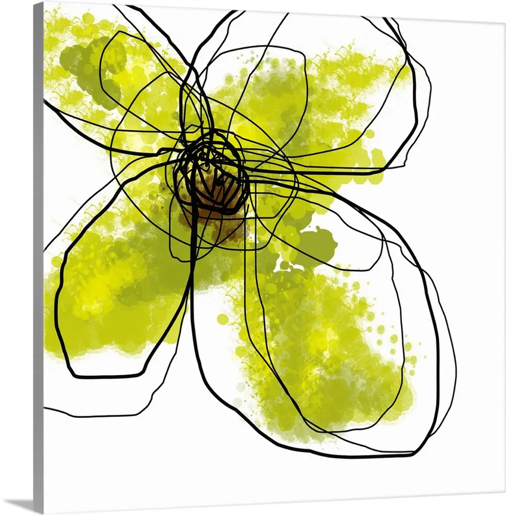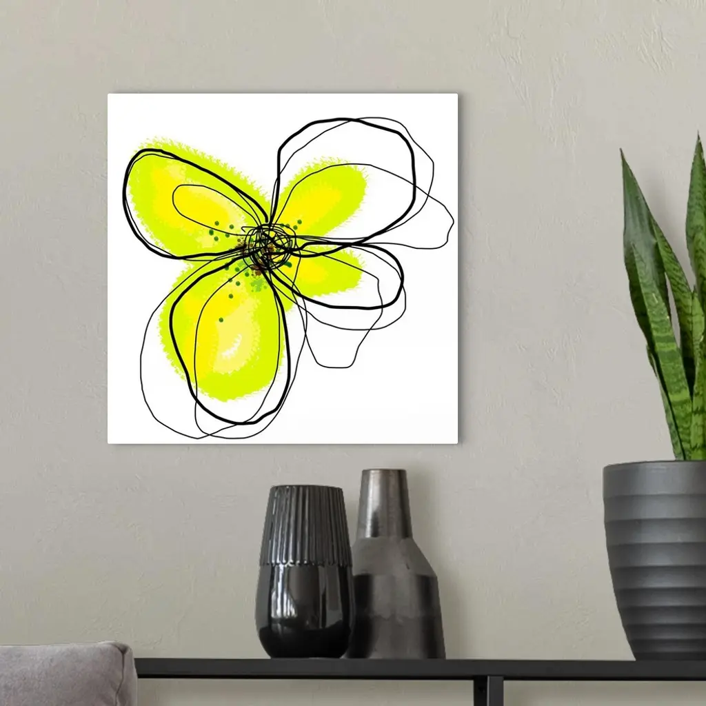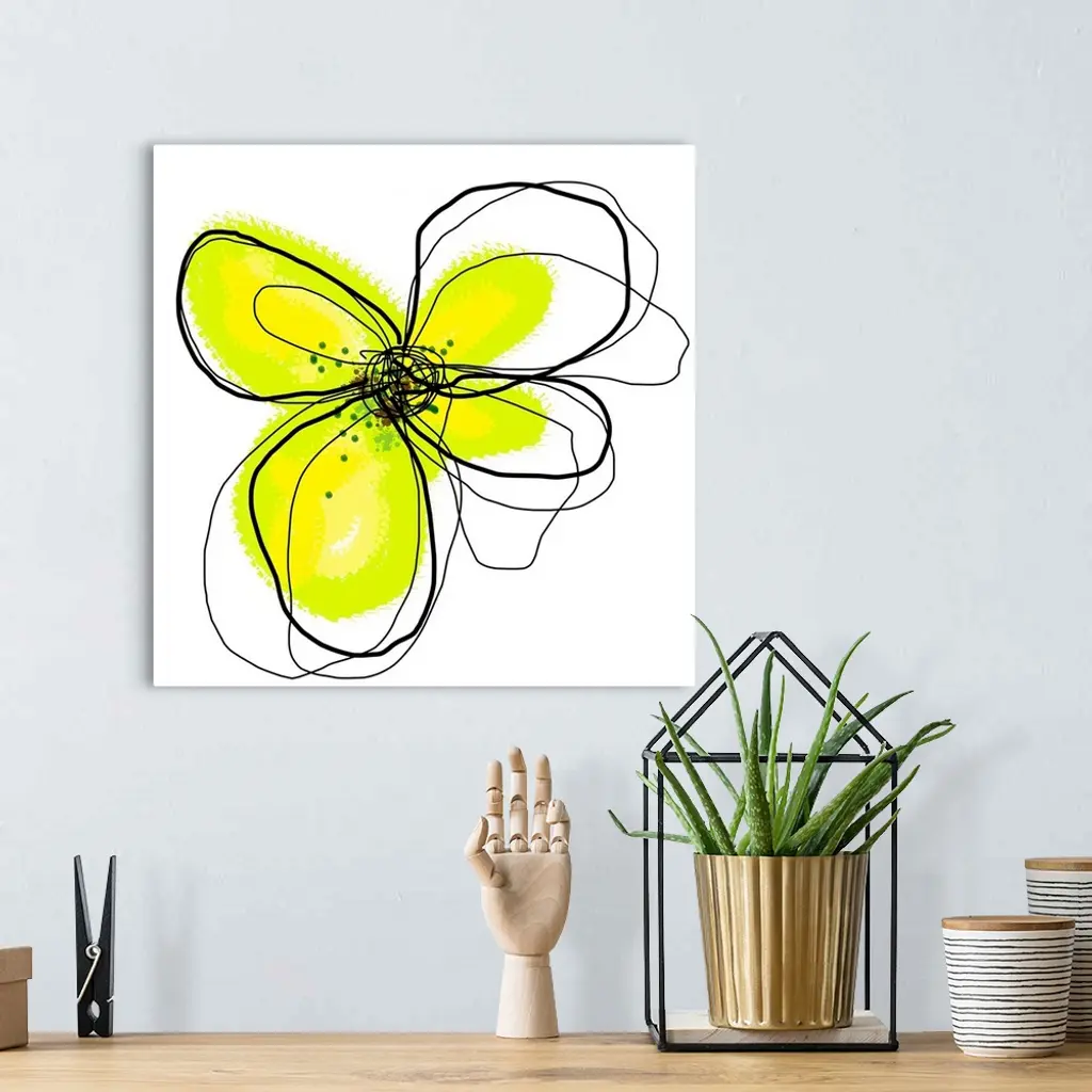 Wall art that is square in shape, this is contemporary painting of a flower illustrated by layering digital painting and line art.