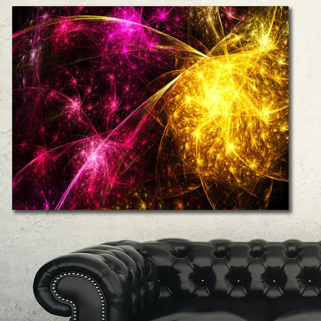 Yellow Pink Colorful Fireworks, Oversized Abstract Canvas Art Print, 60x40