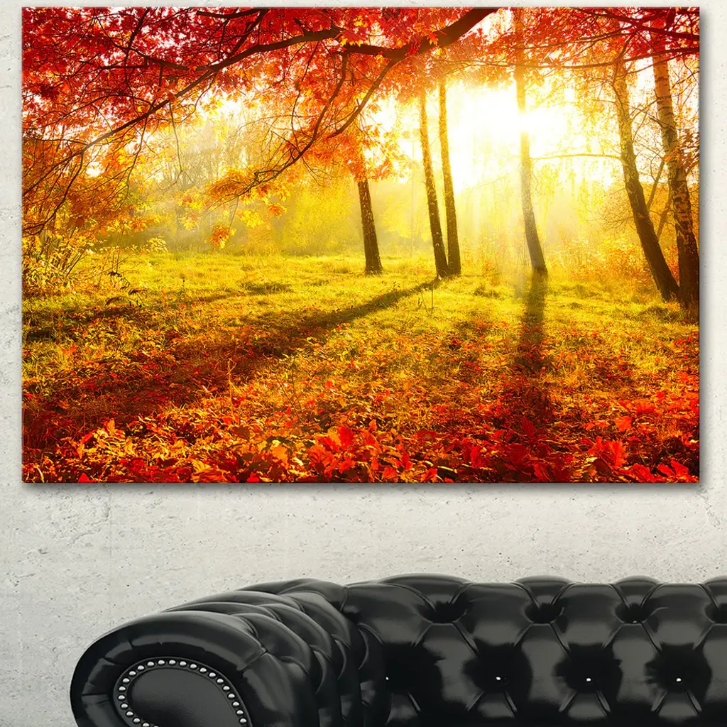 Yellow Red Fall Trees And Leaves, Landscape Canvas Art Print, 60"x28"