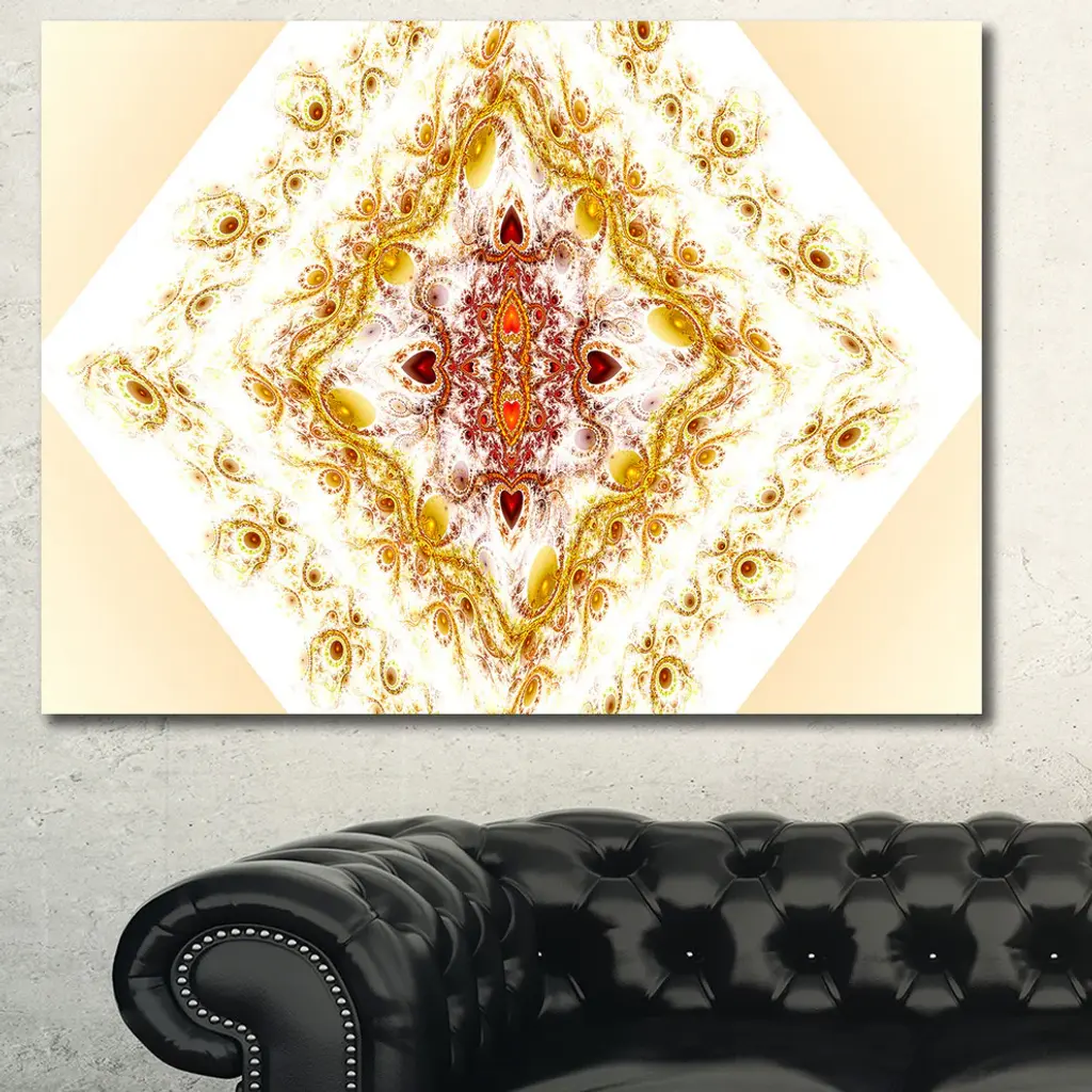 Yellow Rhombus Fractal Design, Oversized Abstract Canvas Art Print, 60x40
