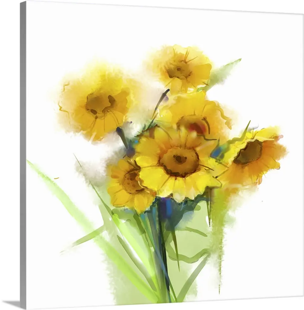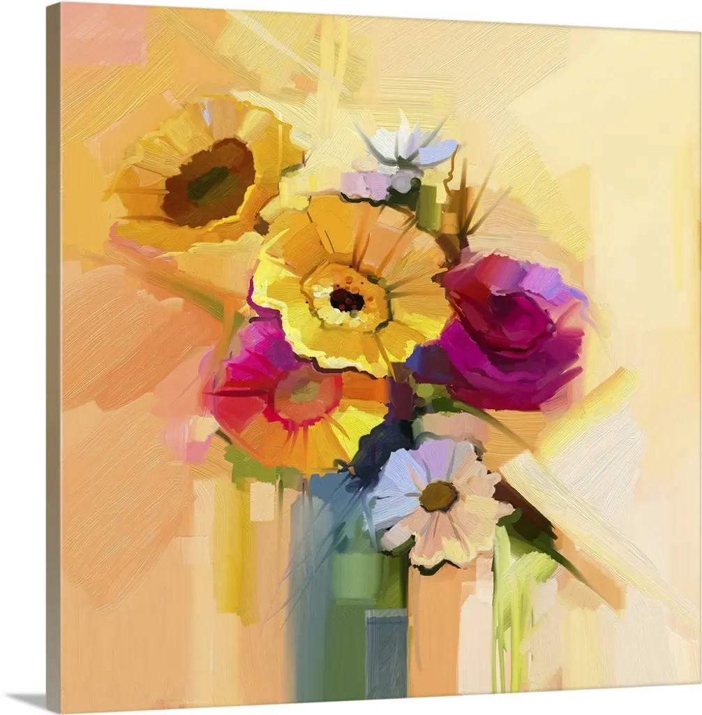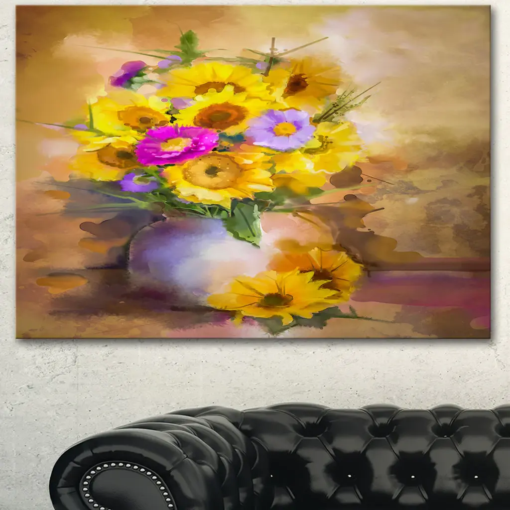 Yellow Sunflower And Violet Aster Flowers, Floral Wall Art, 60"x28"