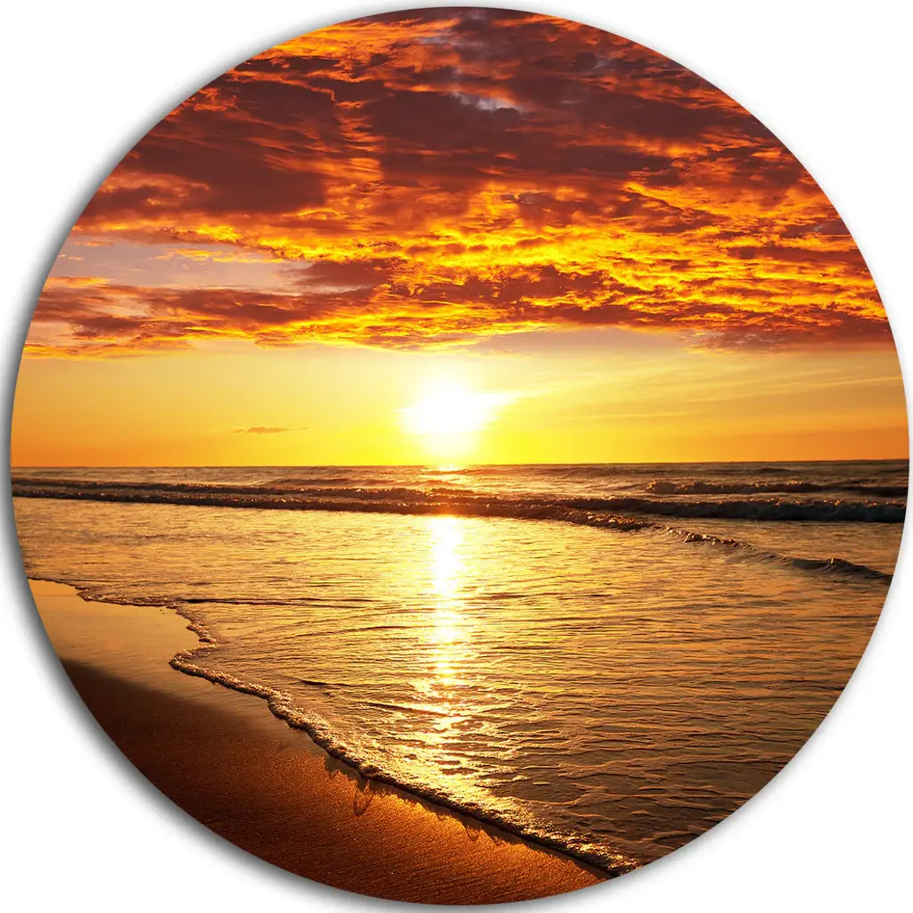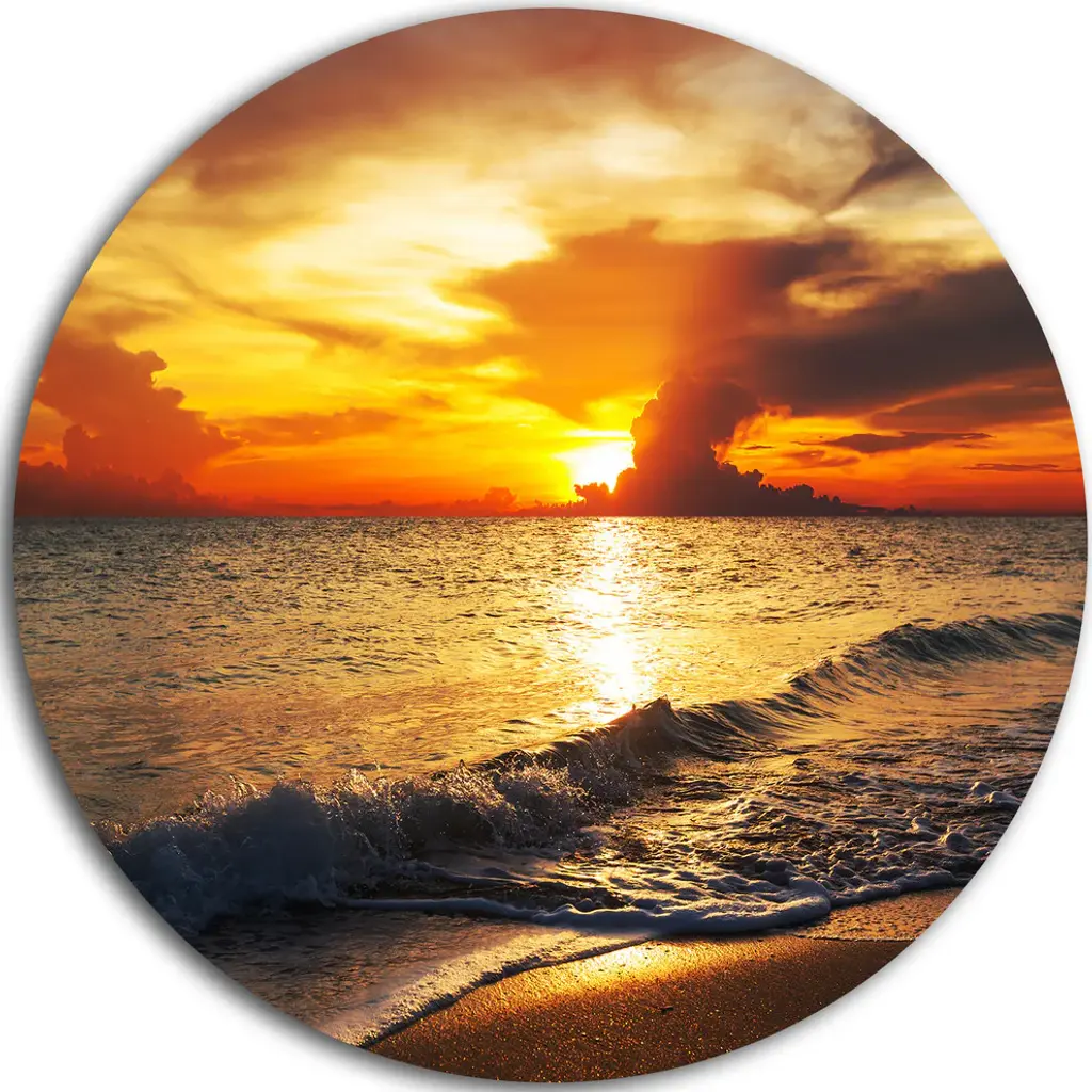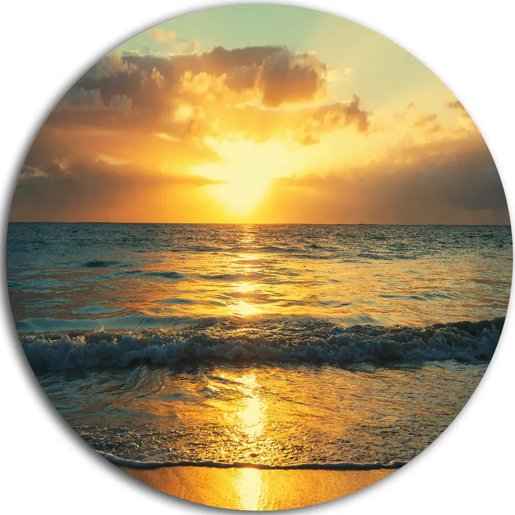 Yellow Sunset Through Dark Clouds, Seashore Disc Metal Artwork, 23"