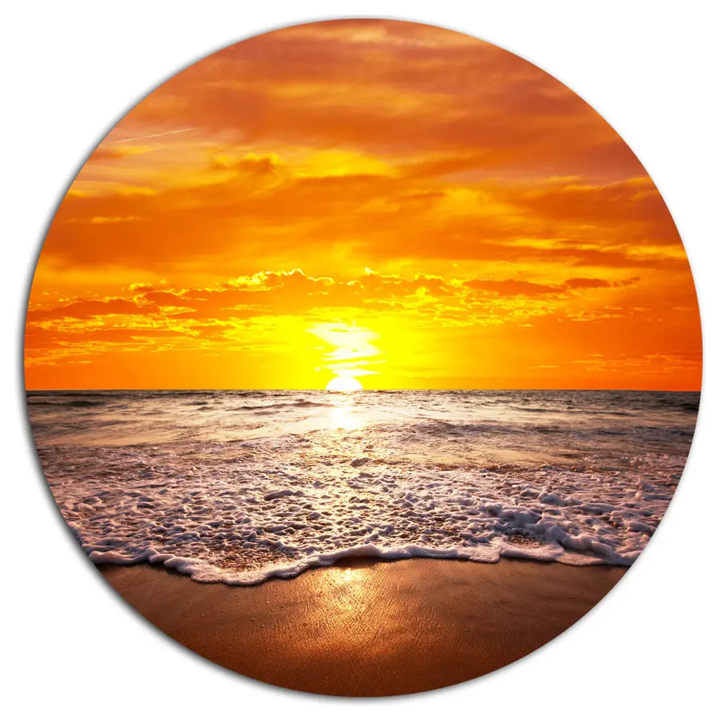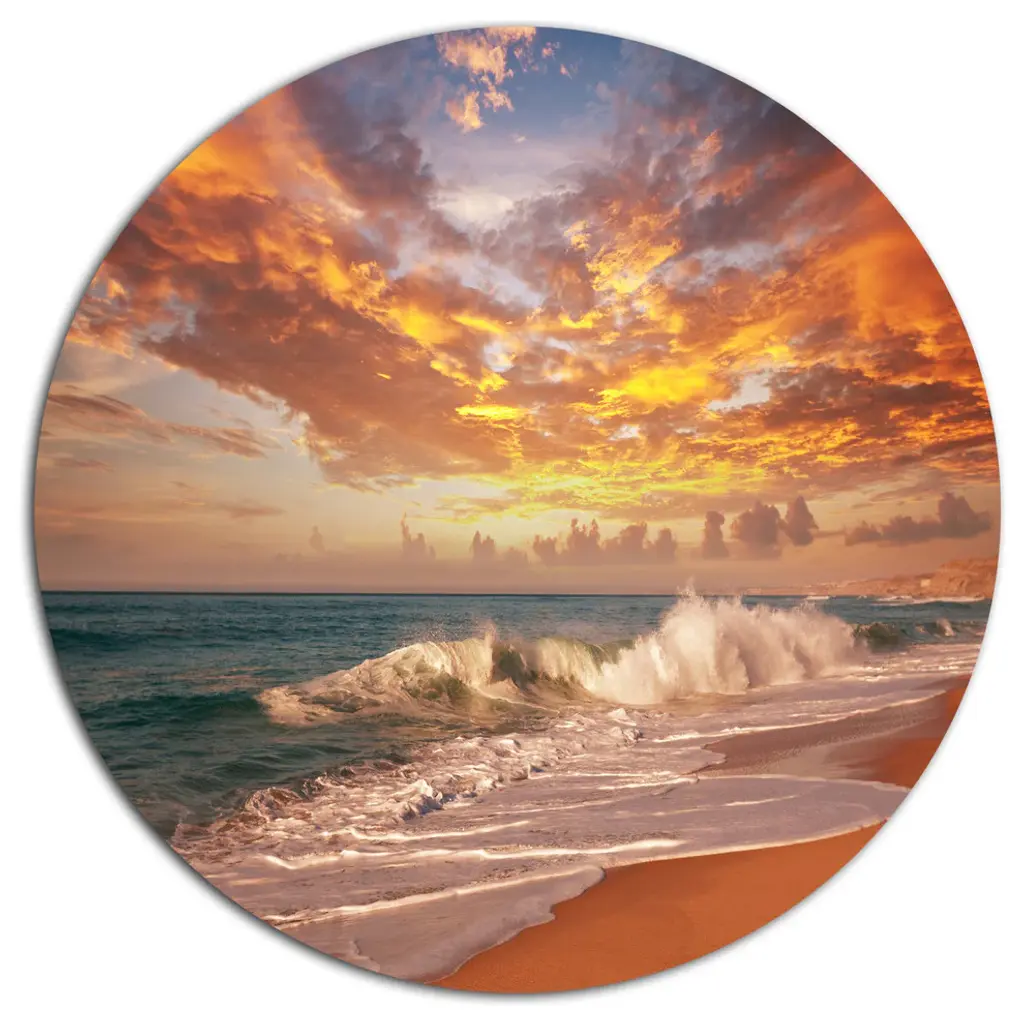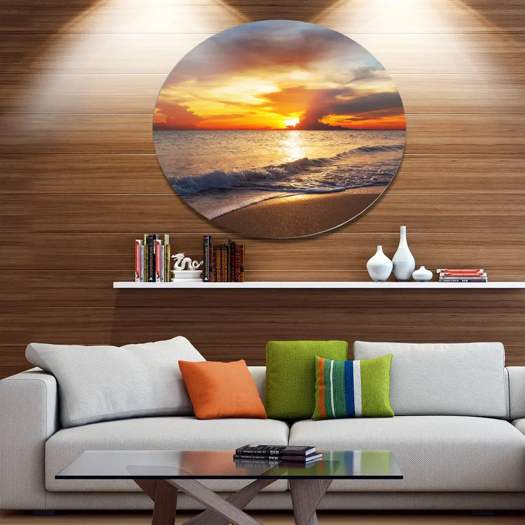 Yellow Sunset Through Dark Clouds, Seashore Disc Metal Artwork, 23"