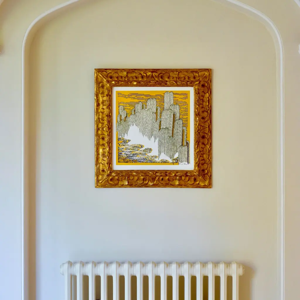 Peace, a garden where prayers are made and divine messages received, a place of exquisite harmony with water bringing renewal, calm, wonder and continuity.A limited edition print of 100, numbered and signed on museum etching paper, embossed with the Richard Allan London company seal. This design is a 1960s-70s original archive design from Richard Allan London and is made in England.Unframed
