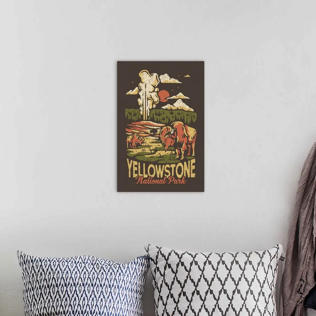 Yellowstone National Park, Bison With Geyser Erupting: Retro Travel Poster wall art for home and office decor. Discover canvas art prints, photos, mural, big canvas art and framed wall art in GreatBigCanvas.com's varied collections.