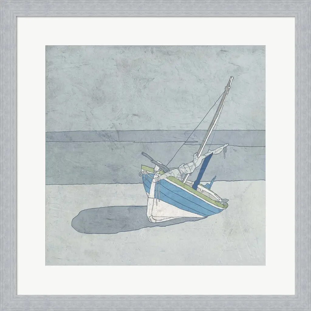 Sailboat Ashore by Ynon Mabat is a high quality piece of framed artwork. The finished size of this piece is 19.5" X 19.5" with an image size of 14" X 14". It has a Slim Platinum Silver frame with a 2" white mat and is finished with high quality Glass. 100% Satisfaction Guaranteed.