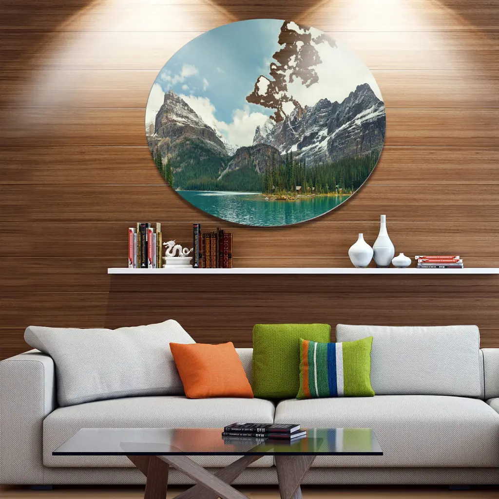 Bring Contemporary Abstraction to your home with this large Circle Metal wall art. This Yoho National Park Panorama Metal Artwork makes it the focal point of any room or office. - White Gloss Coating ensures colors are extra vibrant with light reflection.- Aluminum grade Sheet Metal with 1 inch mounting frame on the back giving the illusion that the artwork is floating on the wall..- Mounting Brackets are included along with instructions.- High Quality Digital images are created directly into a glossy aluminum panel producing a stunning and captivating print into the glossy finish of the metal.- Water, Fire and Scratch resistant HD Aluminum panels.- Looks better than any photo paper and guaranteed to last at least 20 years- Easy to clean with a microfiber cloth. Colors are far superior to regular Canvas Art. - Easy to Hang