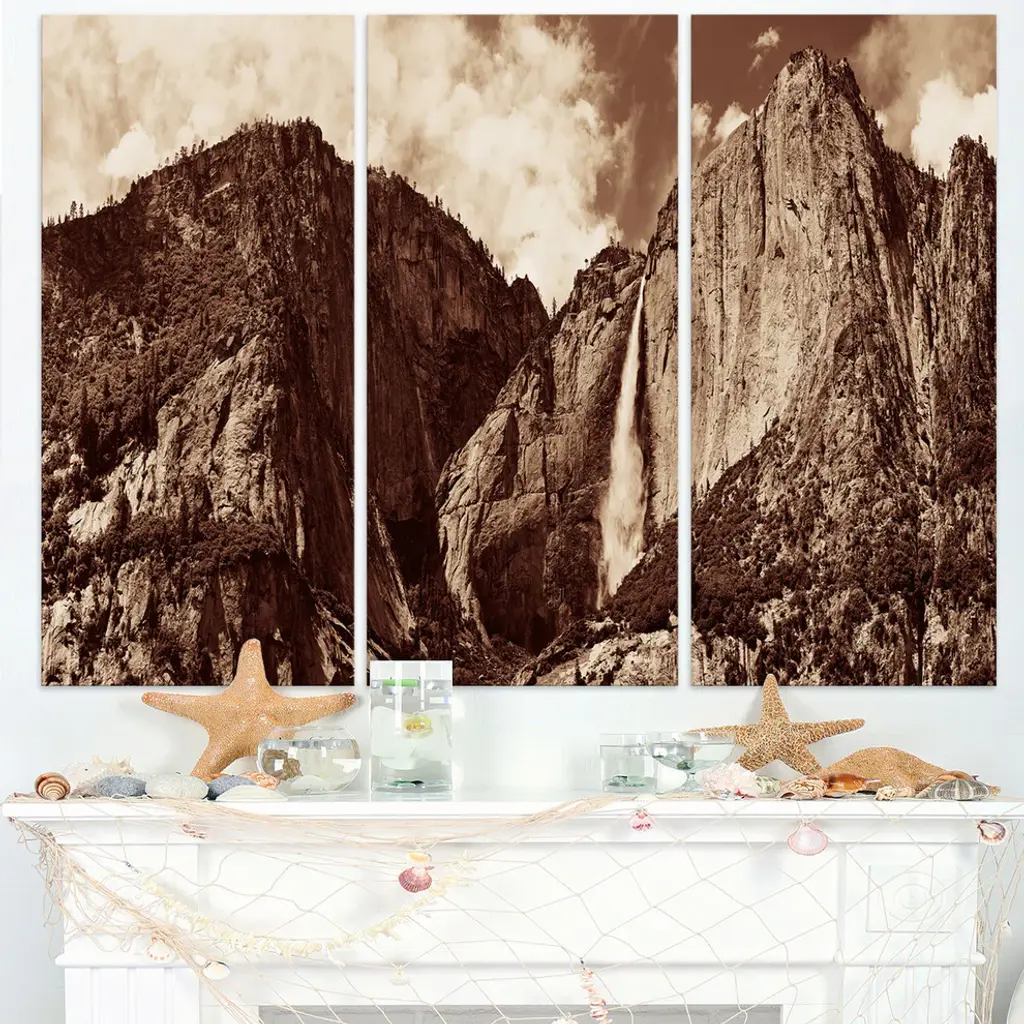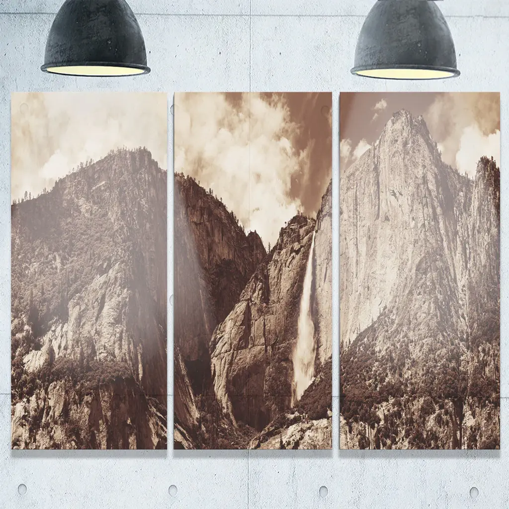 "Yosemite Waterfall Panorama" Metal Wall Art, 3 Panels, 36"x28"