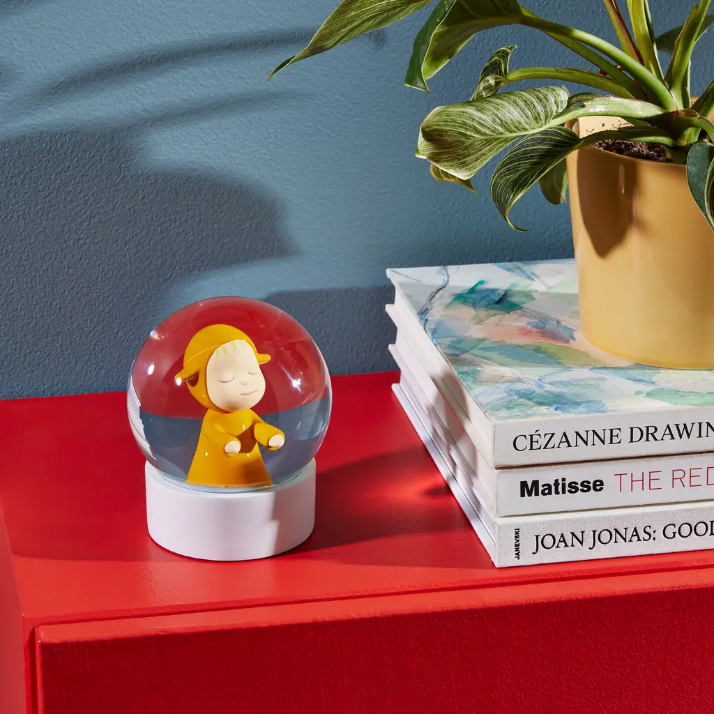 MoMA Exclusive: Yoshitomo Nara’s Little Wanderer—a character based on his 1999 sculptures Little Pilgrims (Night Walking)—has found a home in this snow globe. Made from glass with a simple, round rubberwood base, this white-snow filled design is perfect all year long as a desk object. The figure is made from hand-painted resin. The Yoshitomo Nara Snow Globe measures 4.3h x 3.9" diam. Do not place the snow globe in direct sunlight. Since the mid-1990s, Yoshitomo Nara has exhibited around the world, working with a range of institutions he feels a strong affinity with. His approach to art-making is similarly dependent on his sense of connection to the process of creating; his paintings are expressions of colors that breathe life into his bold images; his sculptures bear traces of his fingers that have shaped their forms; and his drawings, a daily practice, capture the spontaneity of thoughts. Nara has numerous works in MoMA’s collection.
