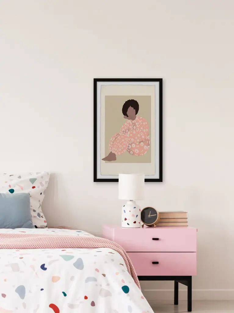 Bring a more cozy feel to your space with this drawing print that features a woman lounging in an adorable pink and white patterned outfit. Proudly printed in the USA, this piece is printed on high quality archive paper and professionally hand-framed. With wall-mounting hooks included, this artful accent is ready to hang up as soon as it reaches your front door.- Top quality Giclee print on high resolution Archive Paper- Hand cut deckled edges- High quality durable non-warping frame- Finished under shatter resistant plexiglass- Arrives ready to hang- Includes a certificate of authenticity- Printed in the USA