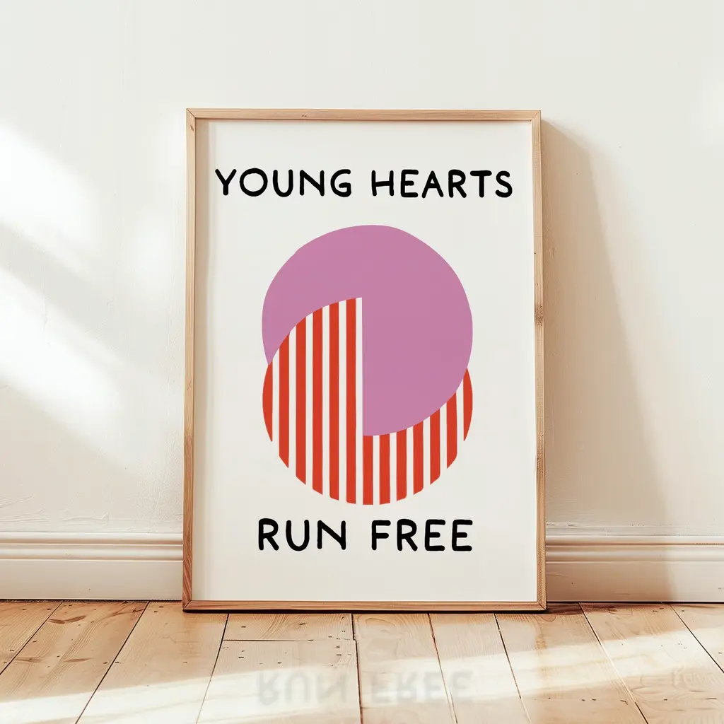 Young Hearts Run Free Retro Music Giclée Art PrintSold without frameGiclée printed on Munken pure smooth cream paper which is certified by the Rainforest Alliance Program for FSC® Standards.