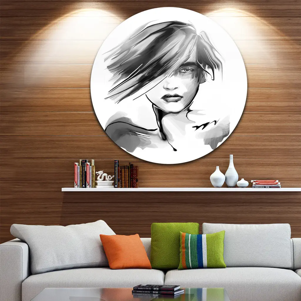 Bring Contemporary Abstraction to your home with this large Circle Metal wall art. This Young Woman Black White Metal Artwork makes it the focal point of any room or office. - White Gloss Coating ensures colors are extra vibrant with light reflection.- Aluminum grade Sheet Metal with 1 inch mounting frame on the back giving the illusion that the artwork is floating on the wall..- Mounting Brackets are included along with instructions.- High Quality Digital images are created directly into a glossy aluminum panel producing a stunning and captivating print into the glossy finish of the metal.- Water, Fire and Scratch resistant HD Aluminum panels.- Looks better than any photo paper and guaranteed to last at least 20 years- Easy to clean with a microfiber cloth. Colors are far superior to regular Canvas Art. - Easy to Hang
