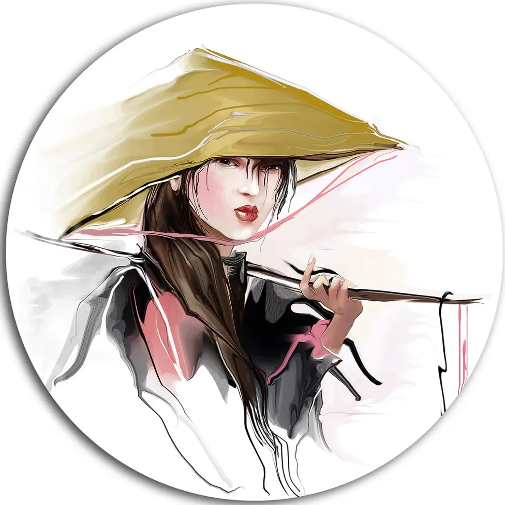 Young Woman Black White, Portrait Digital Art Disc Metal Artwork, 23"