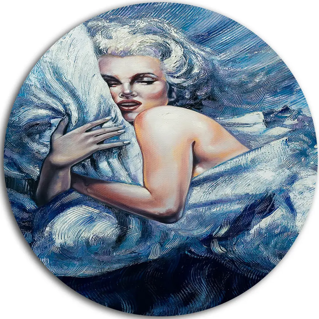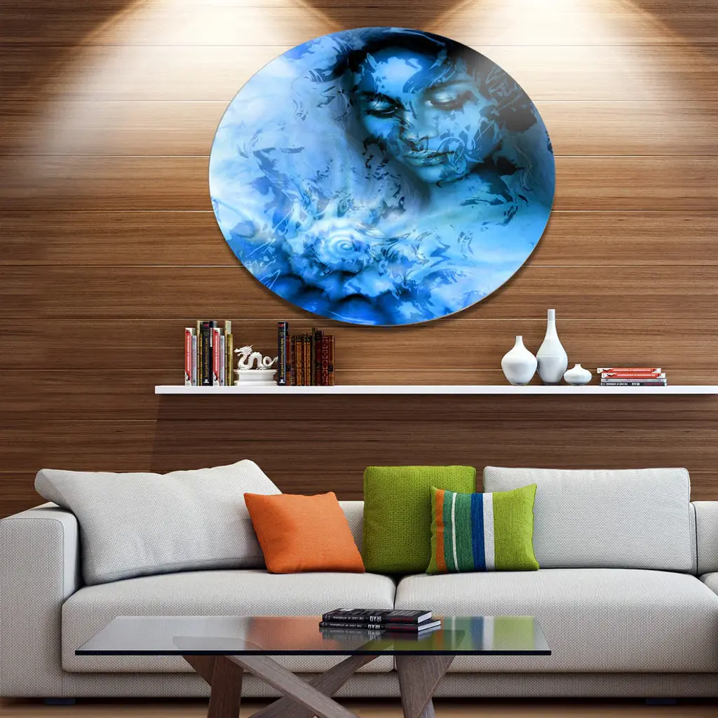 Bring Contemporary Abstraction to your home with this large Circle Metal wall art. This Young Woman With Closed Eyes Metal Artwork makes it the focal point of any room or office. - White Gloss Coating ensures colors are extra vibrant with light reflection.- Aluminum grade Sheet Metal with 1 inch mounting frame on the back giving the illusion that the artwork is floating on the wall..- Mounting Brackets are included along with instructions.- High Quality Digital images are created directly into a glossy aluminum panel producing a stunning and captivating print into the glossy finish of the metal.- Water, Fire and Scratch resistant HD Aluminum panels.- Looks better than any photo paper and guaranteed to last at least 20 years- Easy to clean with a microfiber cloth. Colors are far superior to regular Canvas Art. - Easy to Hang