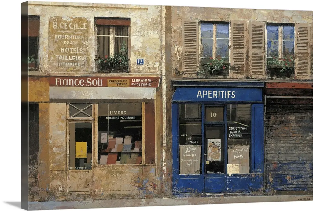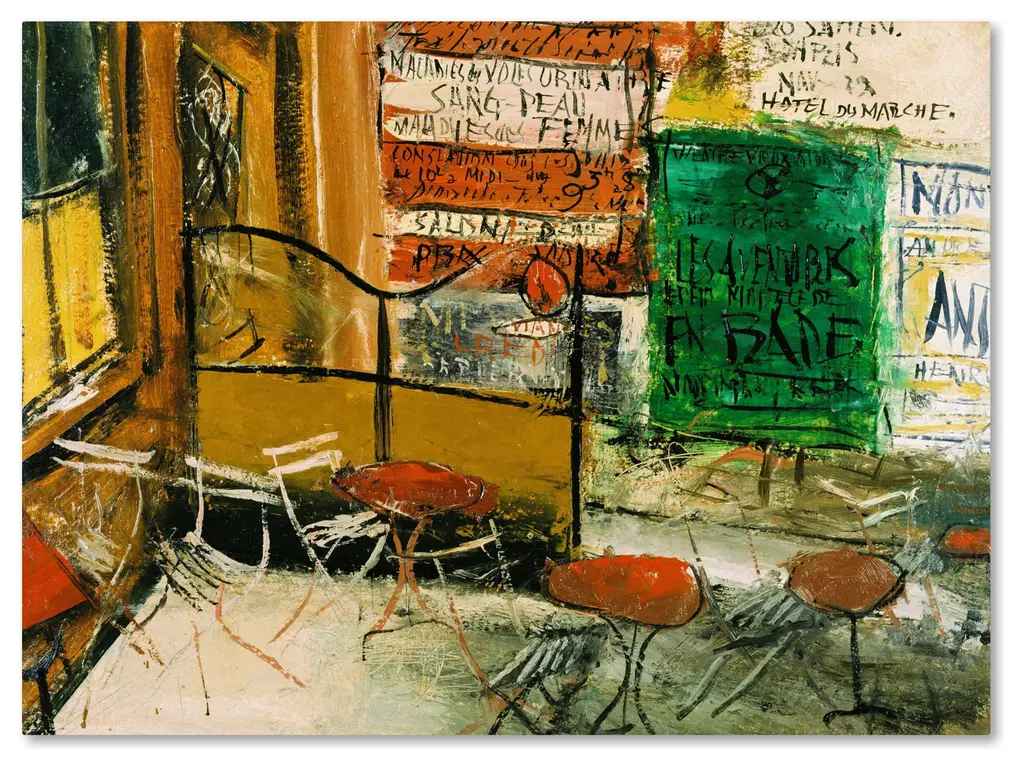 Artist: Yuzo SaekiSubject: Still LifeStyle: Mid-Century ModernProduct Type: Gallery-Wrapped Canvas ArtMade in USAThis ready to hang, gallery-wrapped art piece features the interior of a caf with posters lining the walls.Yuzo Saeki was a Japanese painter known for his work in developing modernism and Fauvist Expressionism within the Western-style art movement in early twentieth-century Japanese painting. Saeki favored portraiture and landscape paintings of Parisian city scenes, especially the backstreets, bars, and buildings in the style of Maurice Utrillo or Vincent van Gogh.Giclee (jee-clay) is an advanced printmaking process for creating high quality fine art reproductions. The attainable excellence that Giclee printmaking affords makes the reproduction virtually indistinguishable from the original piece. The result is wide acceptance of Giclee by galleries, museums, and private collectors. Gallery wrap is a method of stretching an artist's canvas so that the canvas wraps around the sides and is secured a hidden, wooden frame. This method of stretching and preparing a canvas allows for a frameless presentation of the finished painting.