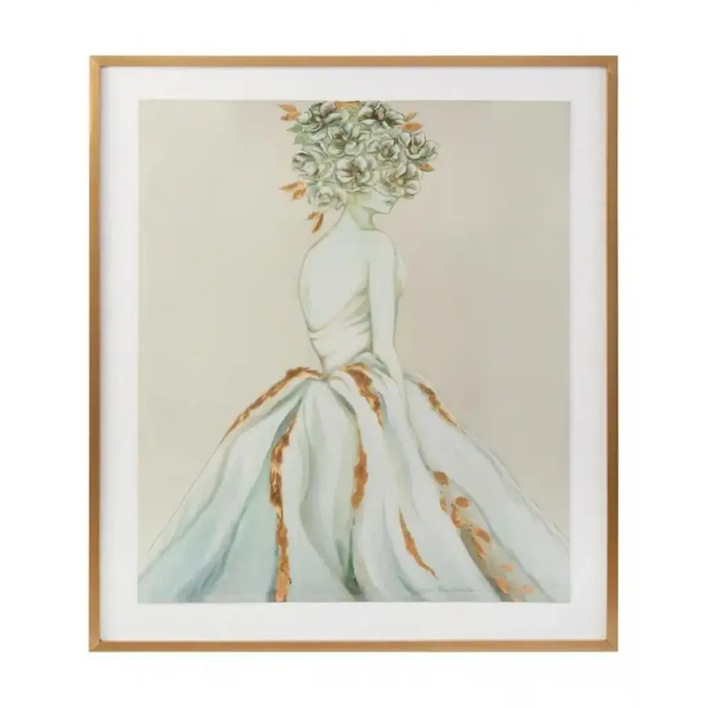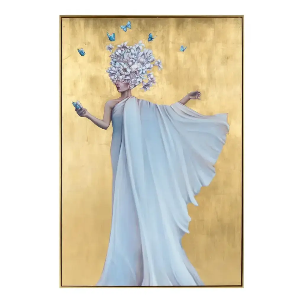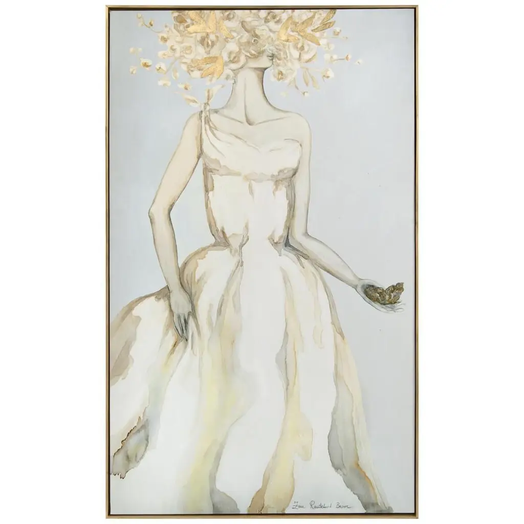 41"W X 69"H X 2"D This stunning figural representation in charcoal and gold tones by Zana Brown is an incredible work of art. The piece features a hand-painted gold molding.