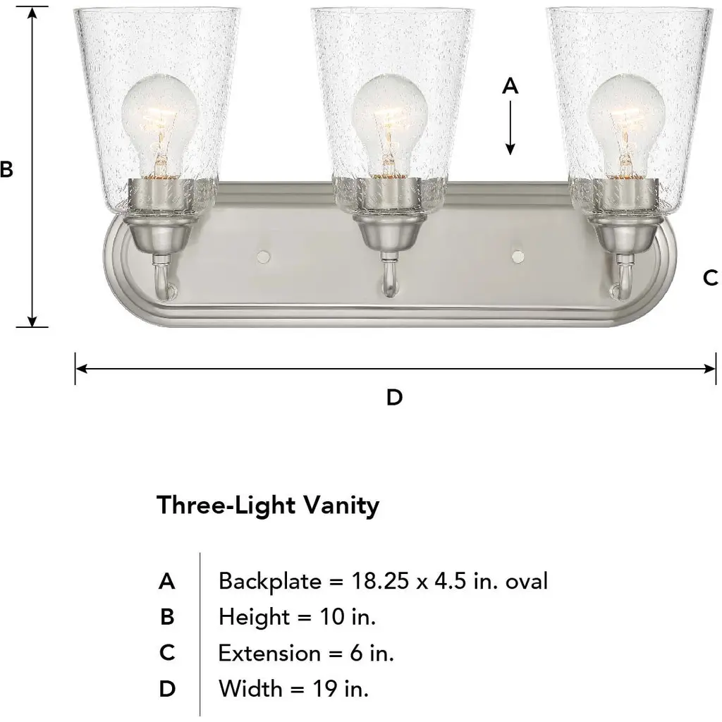 Zane 3 Light 19 Inch Brushed Nickel Vanity Light Wall Light