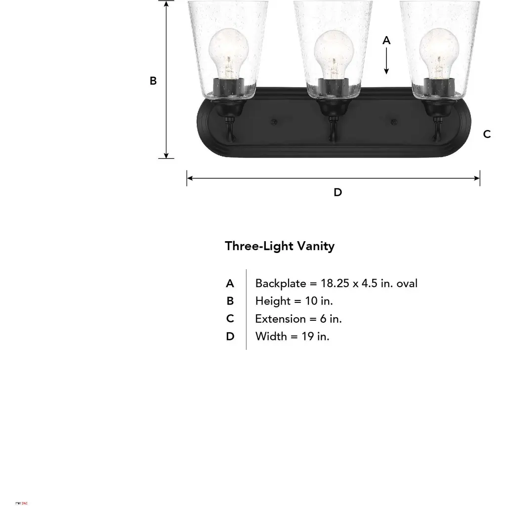 Zane 3 Light 19 Inch Matte Black Vanity Light Wall Light
