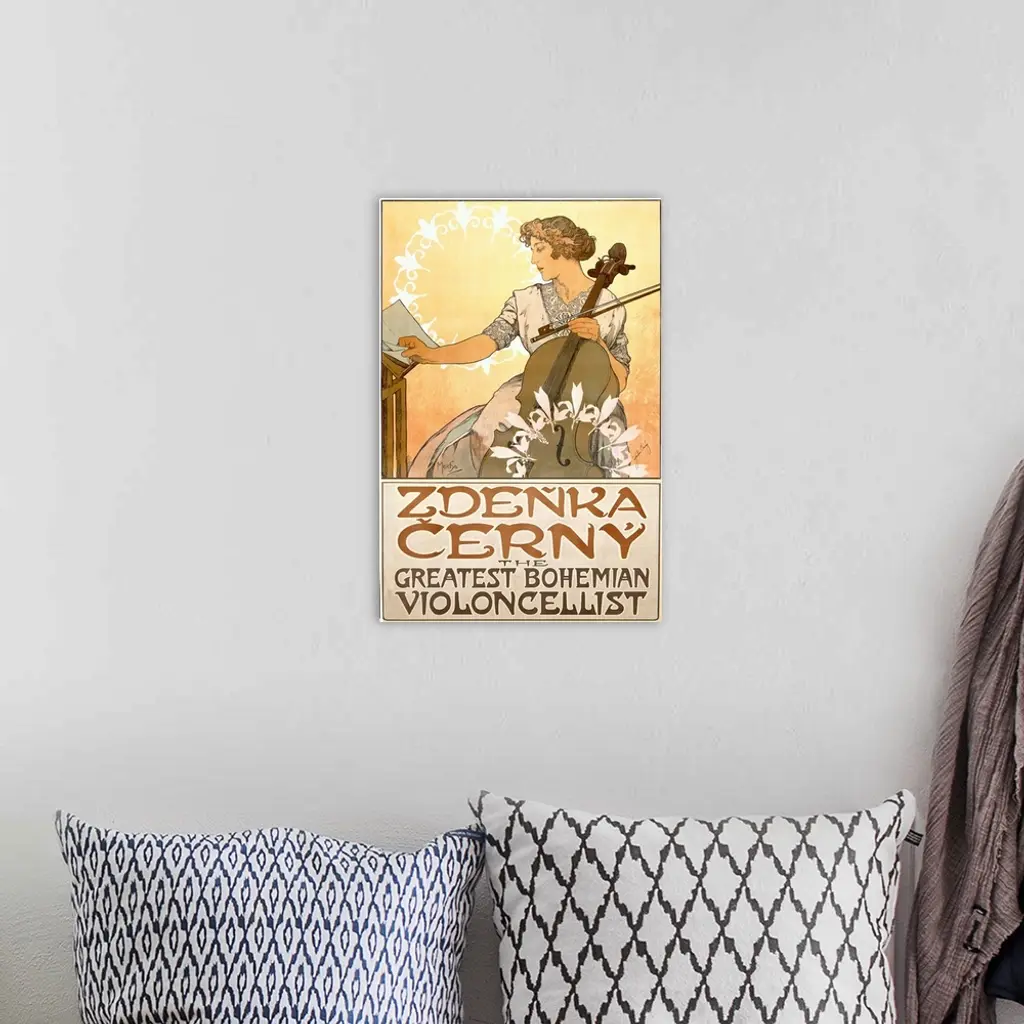Zdenka Cerny, The Greatest Bohemian Violoncellist, Vintage Poster, By Alphonse Mucha