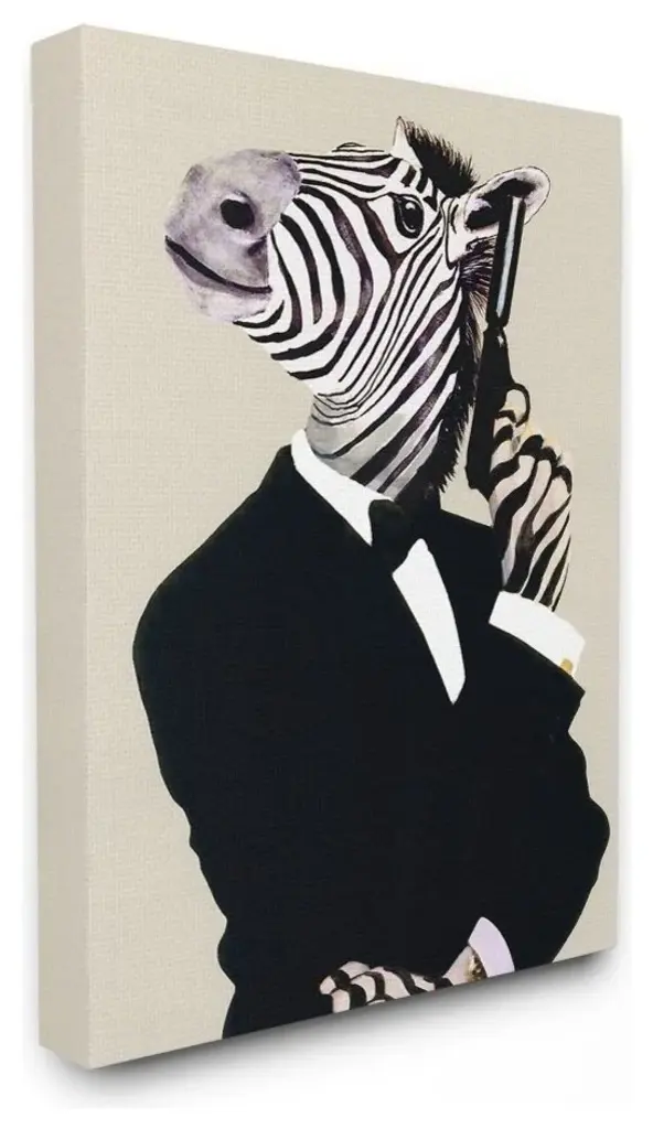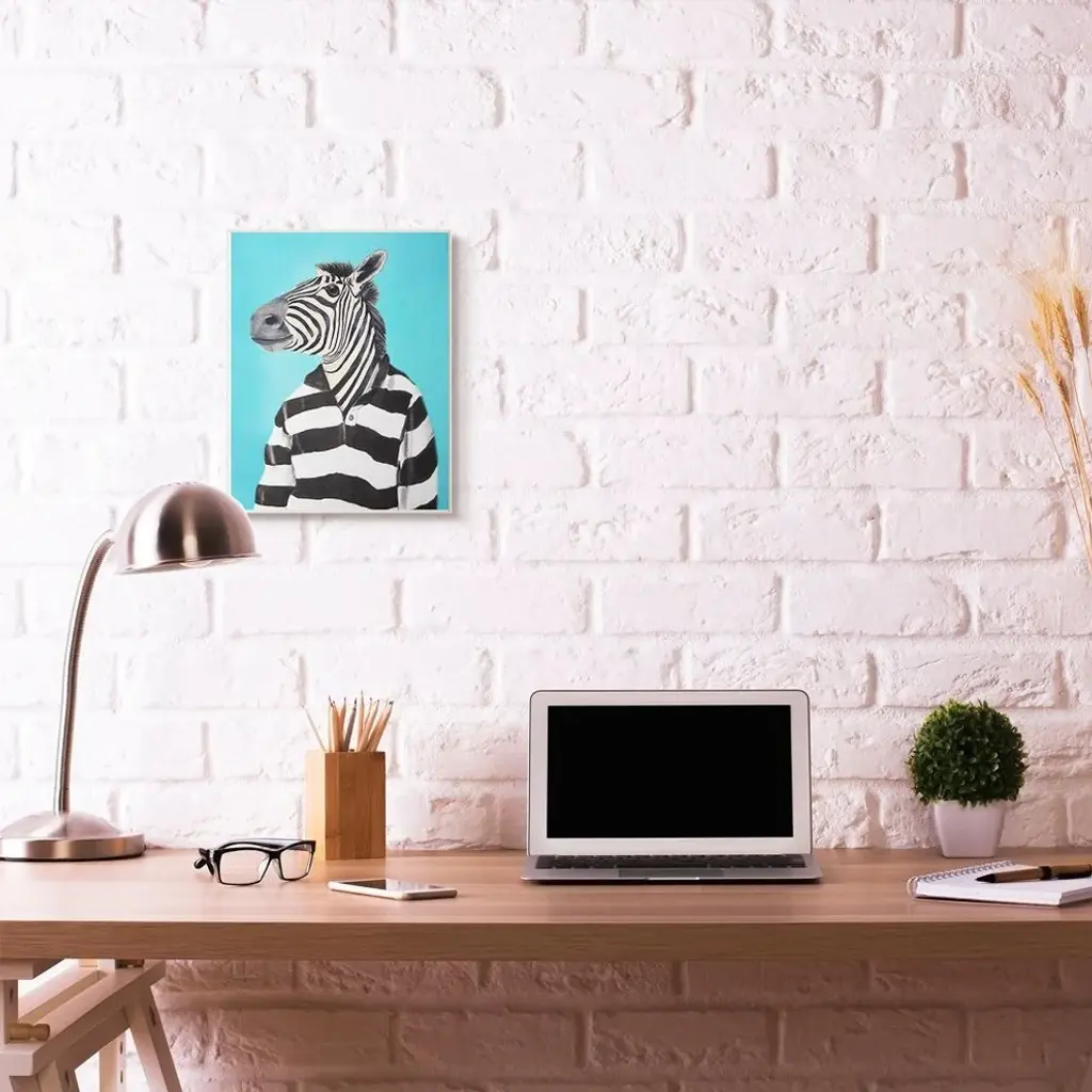 Zebra In A Striped Shirt Portrait, Canvas, 11"x14"