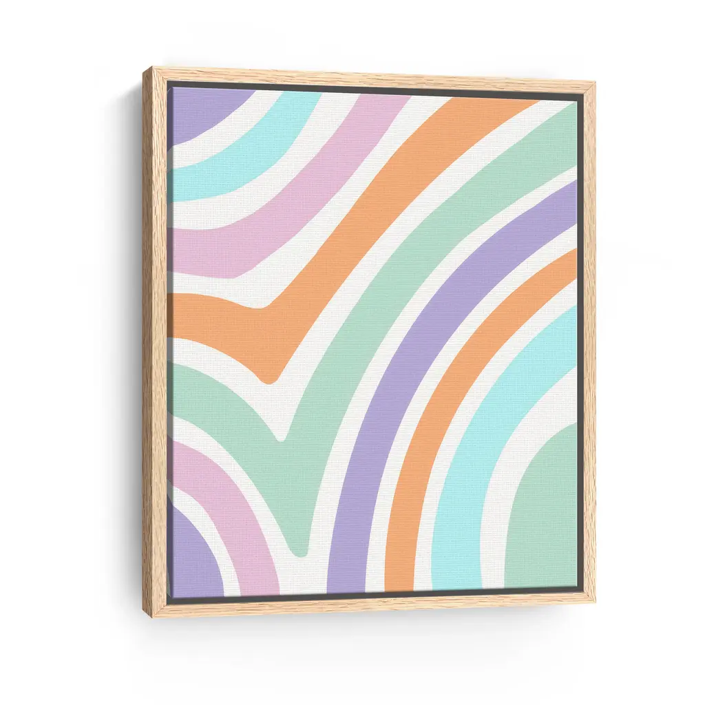 Immerse your space in tranquility with this abstract canvas art, featuring soft, undulating waves in mint green, peach, lilac, and sky blue. The harmonious palette and fluid design evoke a sense of calm and modern elegance Our Gallery Wrap Canvas Prints are proudly assembled with high quality materials in California, USA. Each piece is printed on a thick, archival grade canvas using Giclee technology. It is then hand-stretched by our experienced artisans over solid wood bars, which will not warp over time. The final product is a piece personally crafted for you to confidently display on your wall. Care and Assembly: Ensure that the location of your piece has little to no exposure to heat, sunlight, and moisture. Wipe clean, only if needed. Each piece includes hanging hardware to hang on your wall vertically.