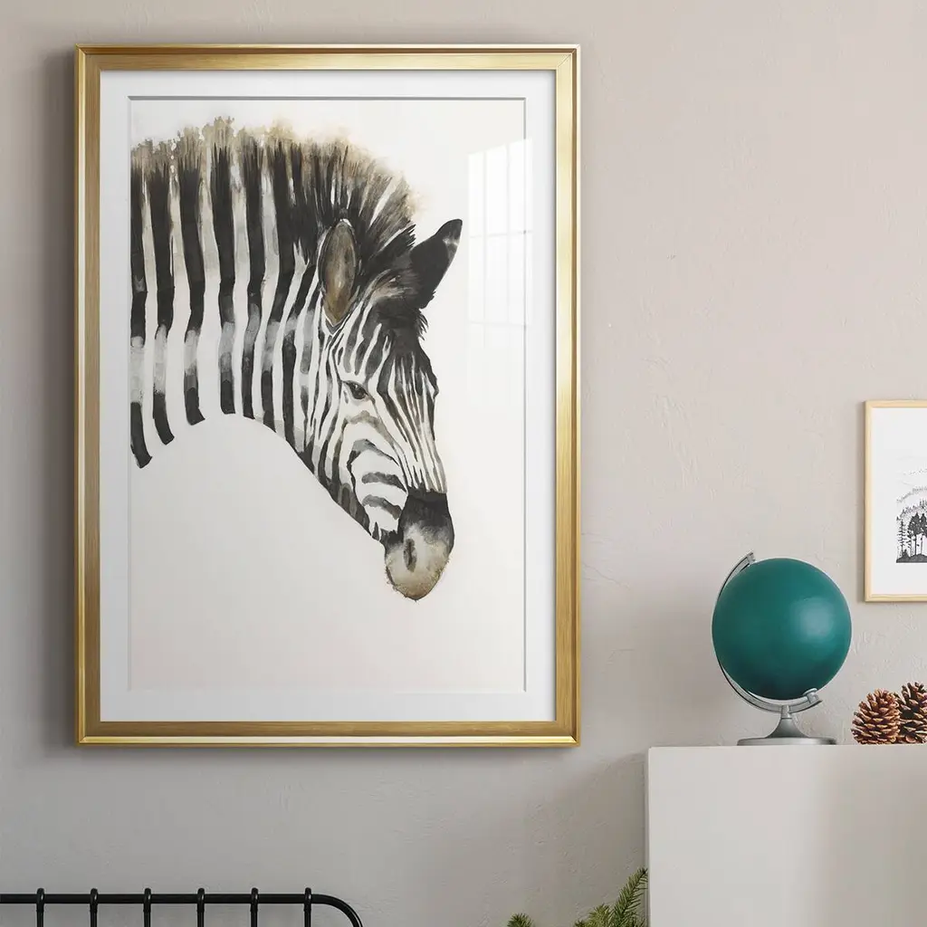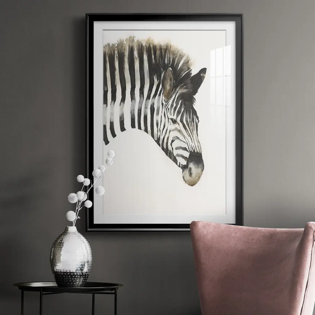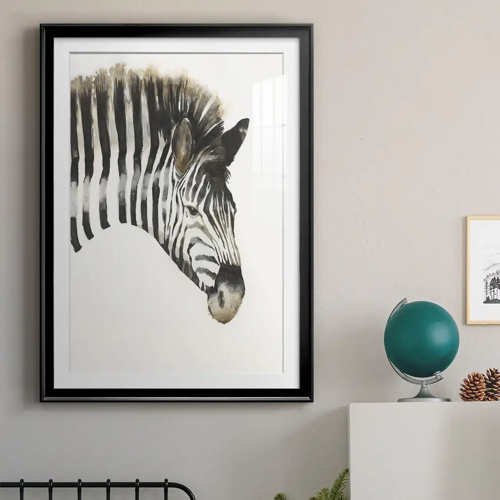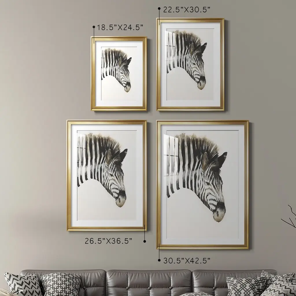 Zebra Stripes Premium Framed Print - Ready to Hang A Premium Framed Print created to last. Framed in distressed wood and available in an array of sizes and colors Featuring a beveled a solid wood stretcher bar, each piece comes ready to hand 4 SIZES AVAILABLE 30.5''X42.5'' - Overall Size 26.5'X36.5'' - Overall Size 22.5''x30.5'' - Overall Size 18.5''x24.5'' - Overall Size Each piece is made to order. Each piece comes with hanging hardware. Made in the USA Ready to Hang Giclee Paper Print Acrylic Glass Beveled Matt Board